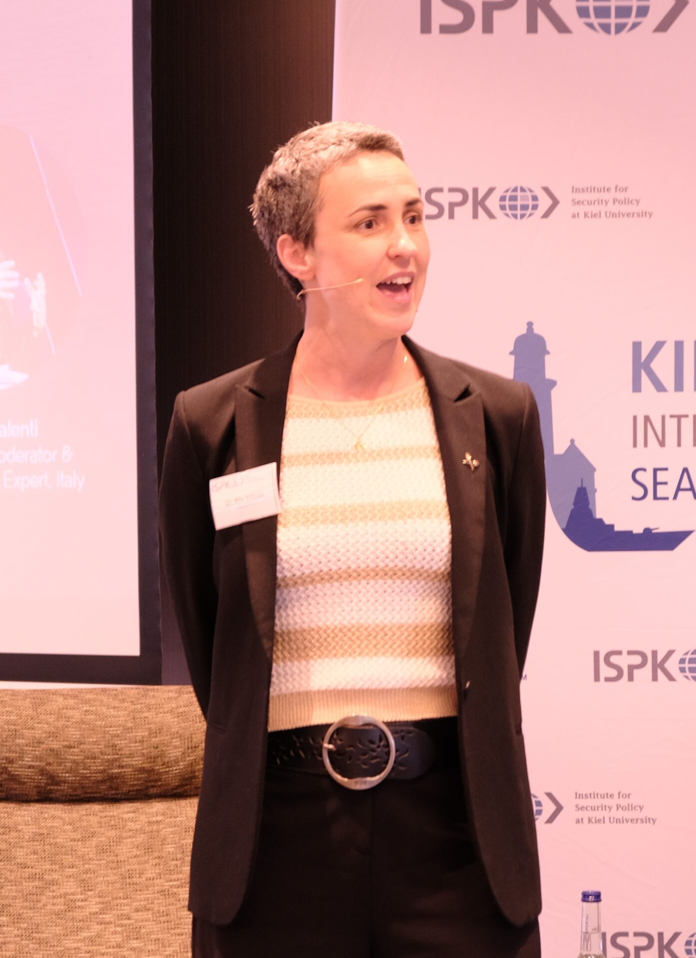 Die Überraschung des Abends war dann KISS-Mastermind und Spiritus Rector selbst: Dr. Sebastian Bruns verlässt das ISPK. Mit bewegter Stimme kündigte er mit einem kurzen Rückblick und Dankesworten seinen Abschied im September an. Er wird zu „neuen Ufern“ aufbrechen, die nur wenige Fahrradminuten weiter liegen: das Innenministerium des Landes Schleswig-Holstein wird sein neues Wirkungsfeld in maritimer Sicherheit. Zunächst verblüfft, dann mit langanhaltendem Applaus reagierten die Anwesenden darauf.