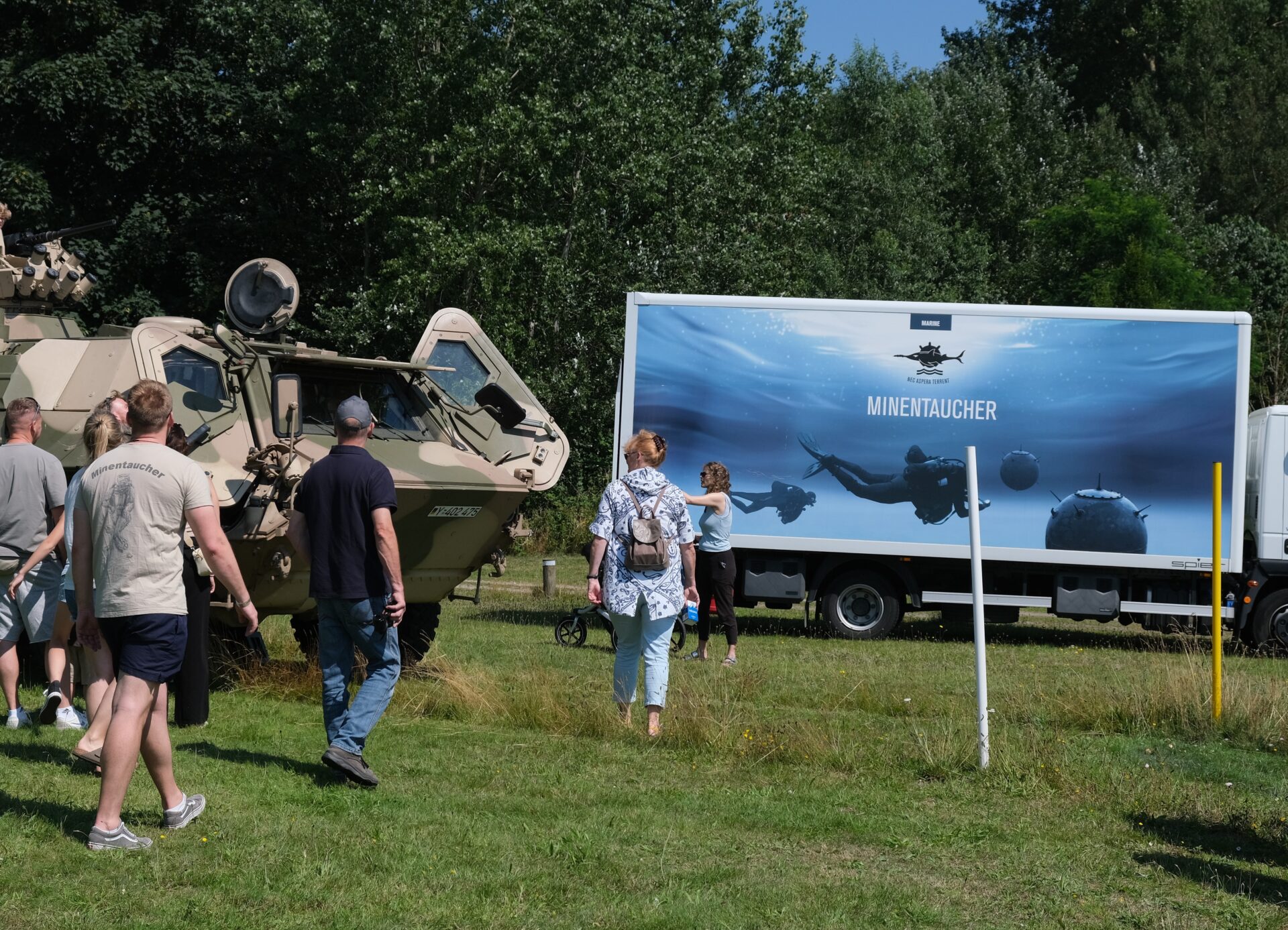 Am 19.07 traf man sich in der Kompanie, die seit Jahren die Heimat aller Minentaucher ist zu einem Rendezvous der Aktiven und der zahlreich erschienen Ehemaligen. Dazu waren viele mit ihrem Wohnmobil und Angehörigen angereist. Am Samstag, den 20.07 war dann Familientag in Eckernförde. Die Technik, die Fahrzeuge und Boote durften von allen Ehepartnern und Kindern besichtigt und auch angefasst werden. Hinzu kamen Vorführungen und kleine „Spiele“ für die Kleinen und die Großen. Abends fand dann der offizielle Geburtstagsball in der Stadthalle von Eckernförde statt, Schirmherr war der Befehlshaber der Flotte und Unterstützungskräfte, Vizeadmiral Frank Lenski.