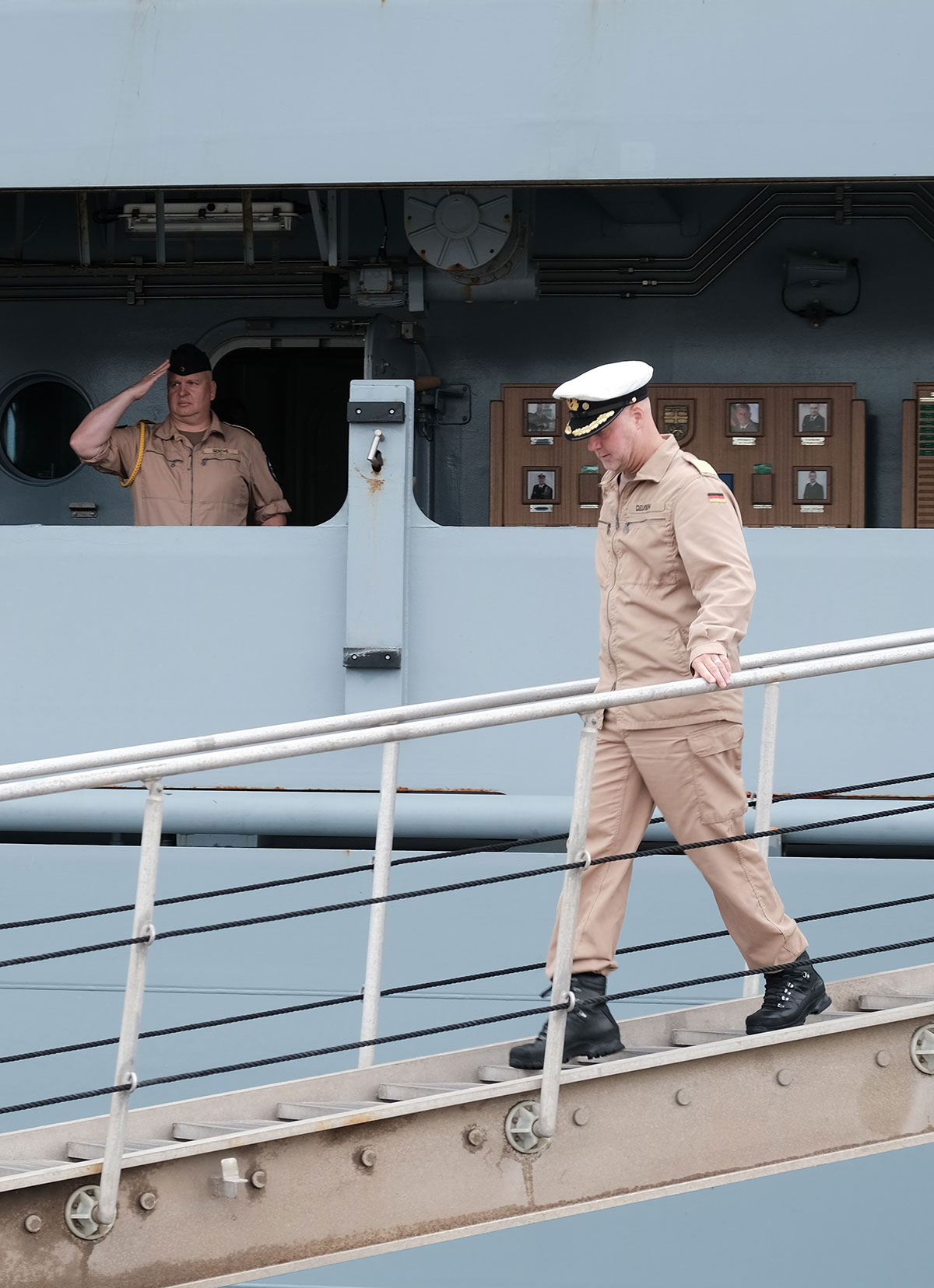 BONN Kommandant Fregattenkapitän Deußen verlässt das Schif, Foto: Holger