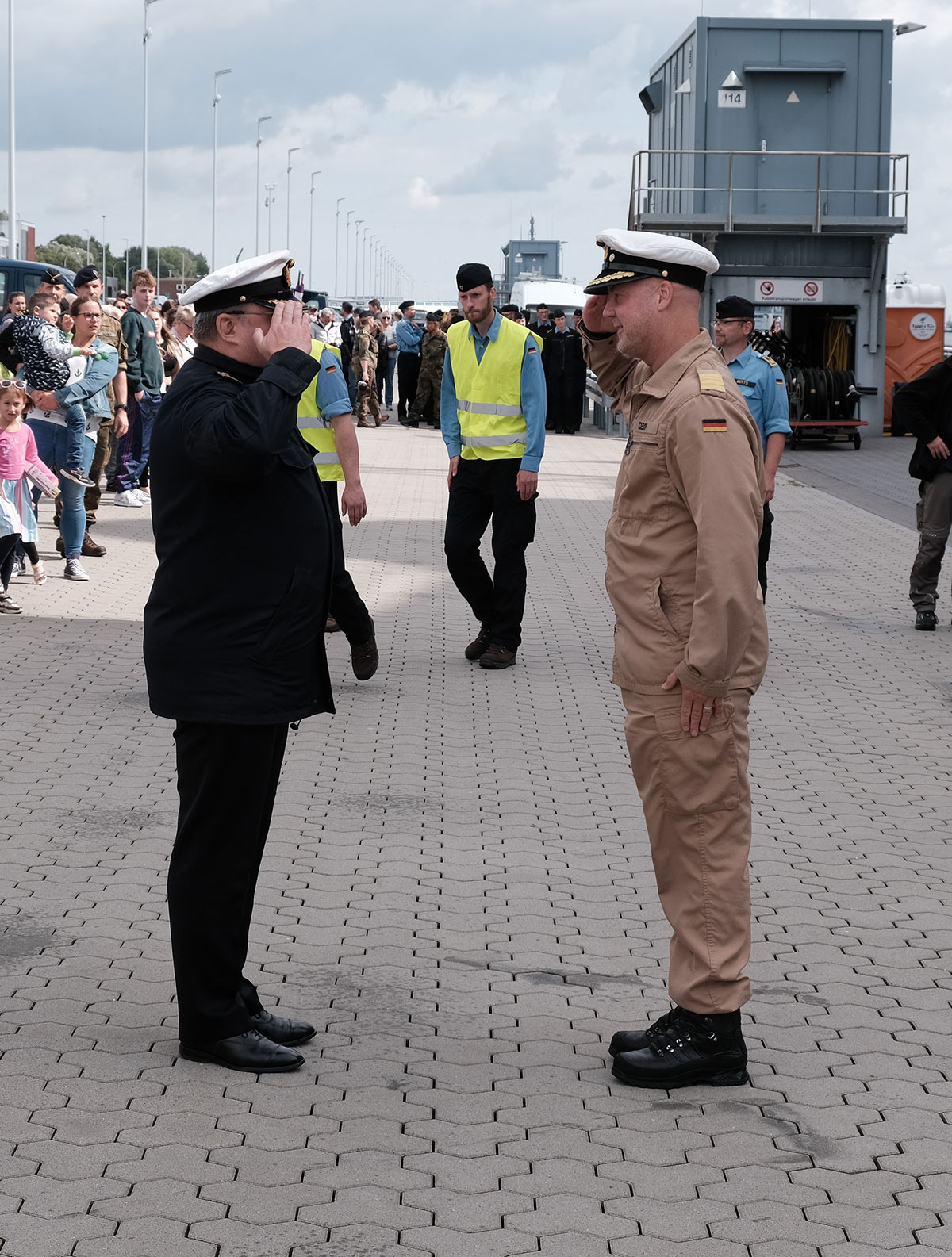 BONN Kommandant meldet dem Geschwaderkommandeur das Schiff zurück, Foto: Holger Schlüter