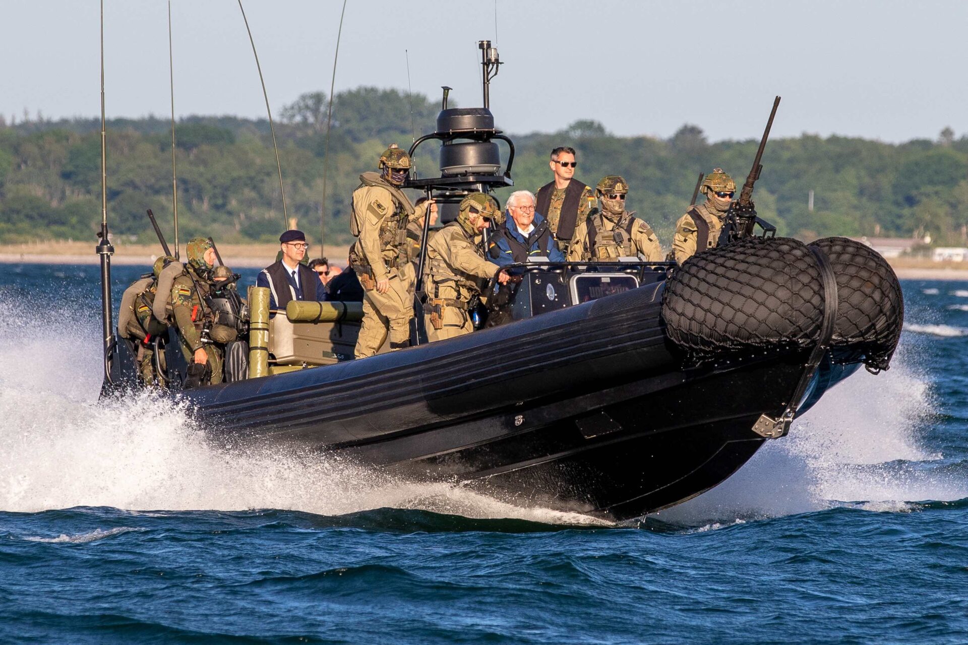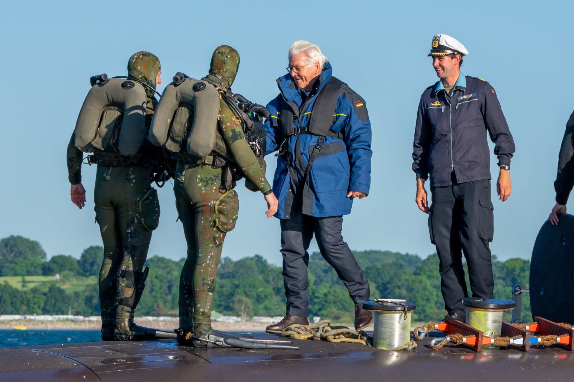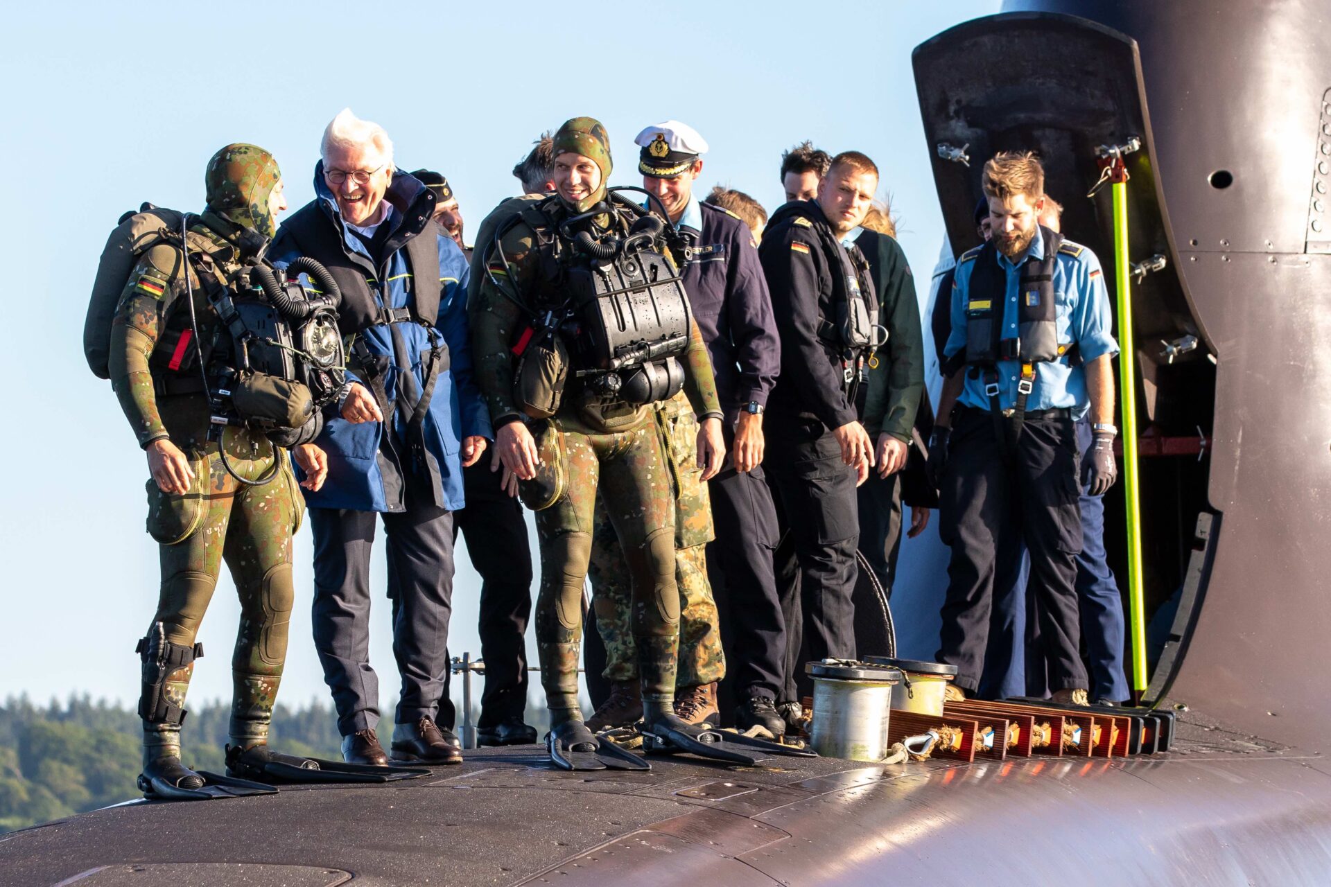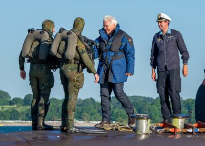 Am Dienstag, den 13. Juni 2023, hatte Bundespräsident Frank-Walter Steinmeier der Deutschen Marine in Eckernförde einen Besuch abgestattet. Geplant waren unter anderem die Mitfahrt auf U33, einem Boot des 1. Ubootgeschwaders. Des Weiteren präsentierten das Seebataillon und das Kommando Spezialkräfte der Marine dem Bundespräsidenten ihre Fähigkeiten in Form von dynamischen Vorführungen.