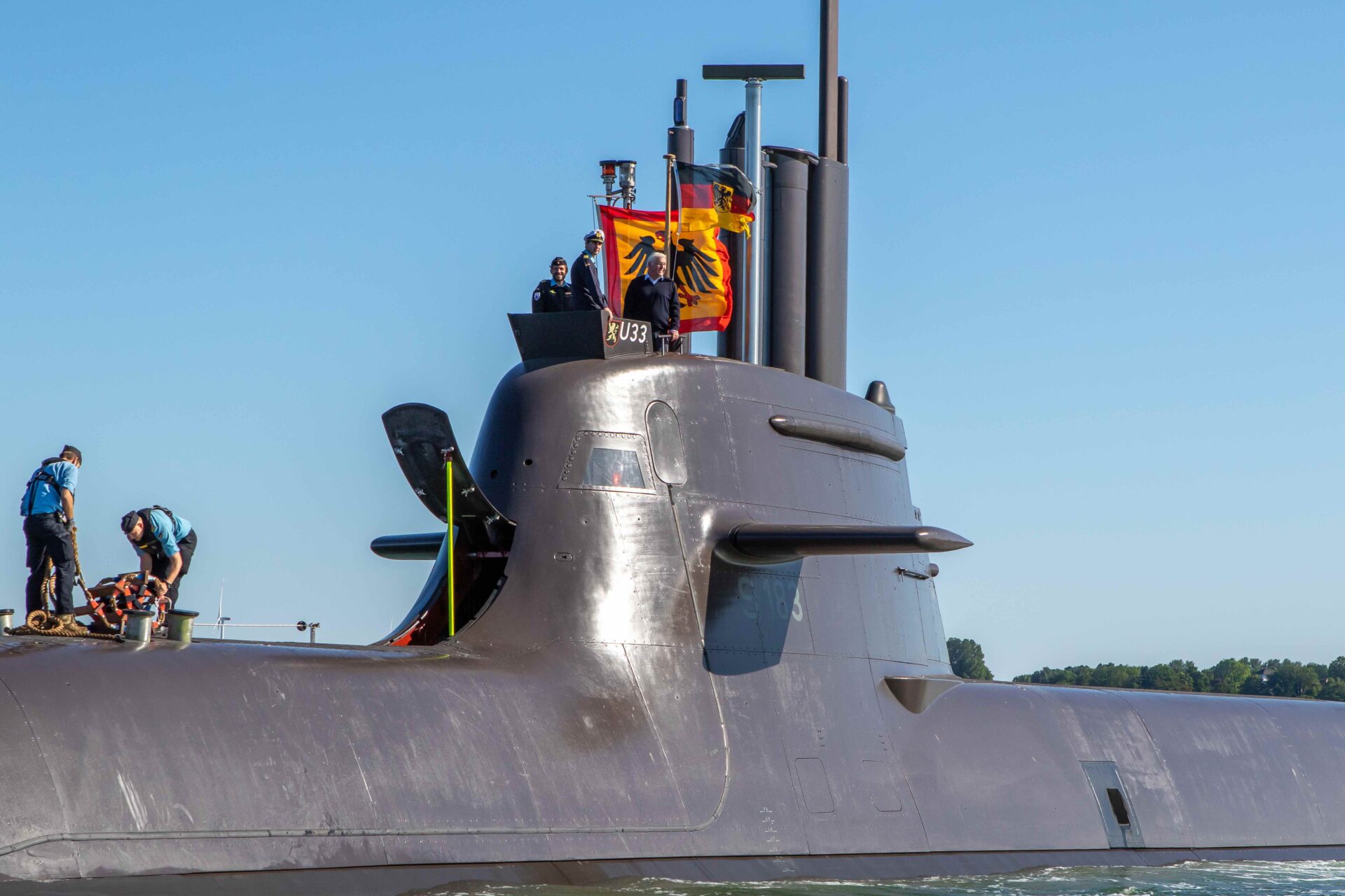 U33 – Ablegen mit Bundespräsident an Bord. Foto: Michael Nitz