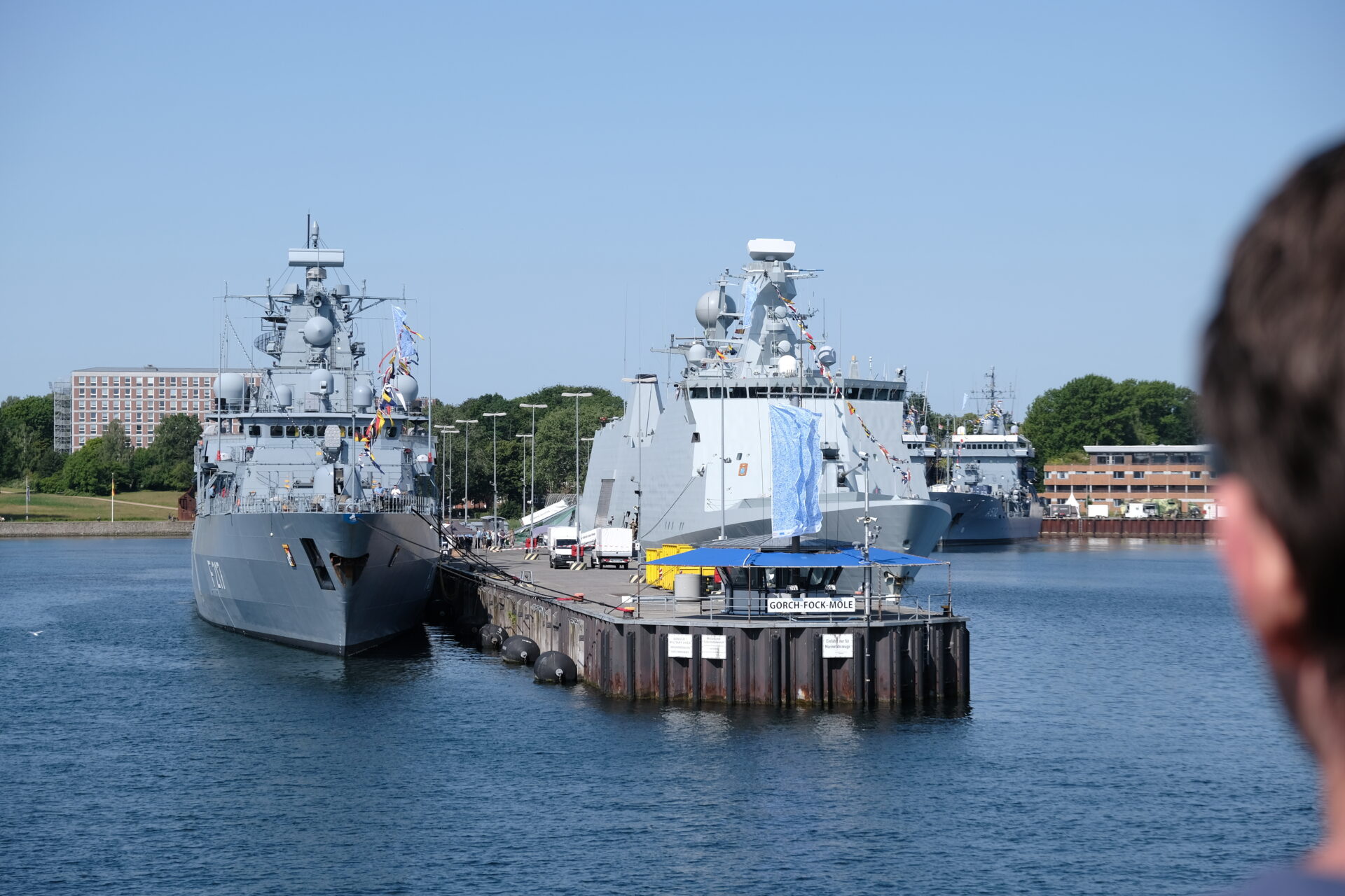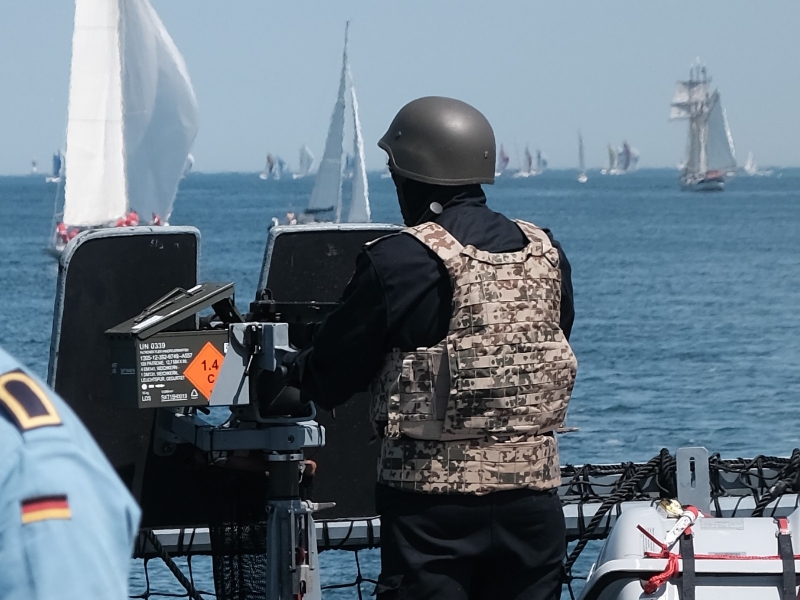 Am Rande: die Magdeburg ist eine von derzeit zwei für die NATO voll einsatzbereit gemeldeten Korvetten. Eine Besonderheit fiel auf: Beim Ein- und Auslaufen waren die achteren Waffenstationen „scharf“ besetzt.