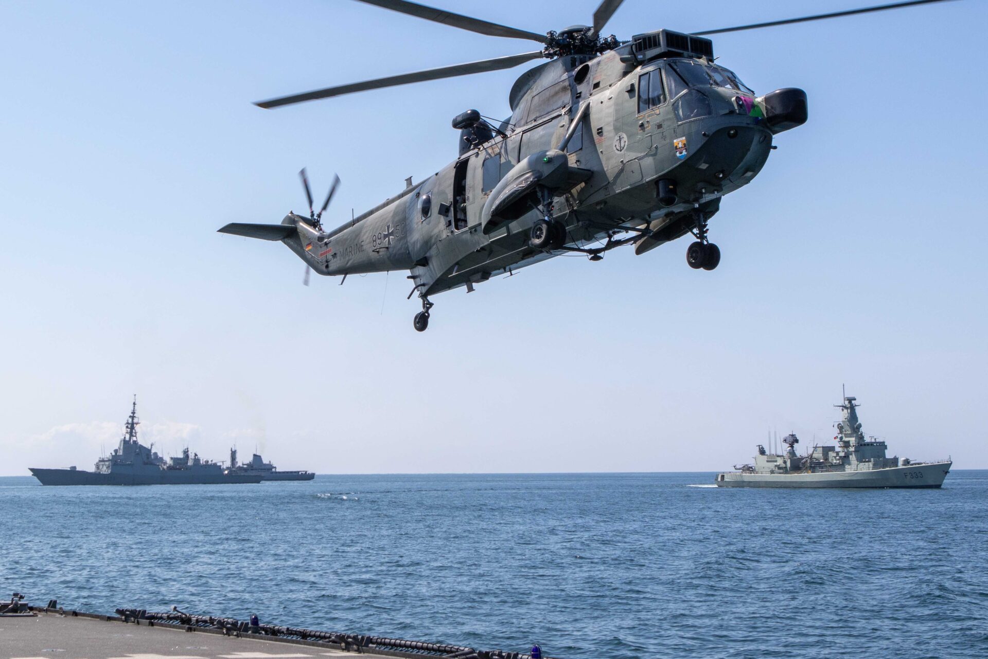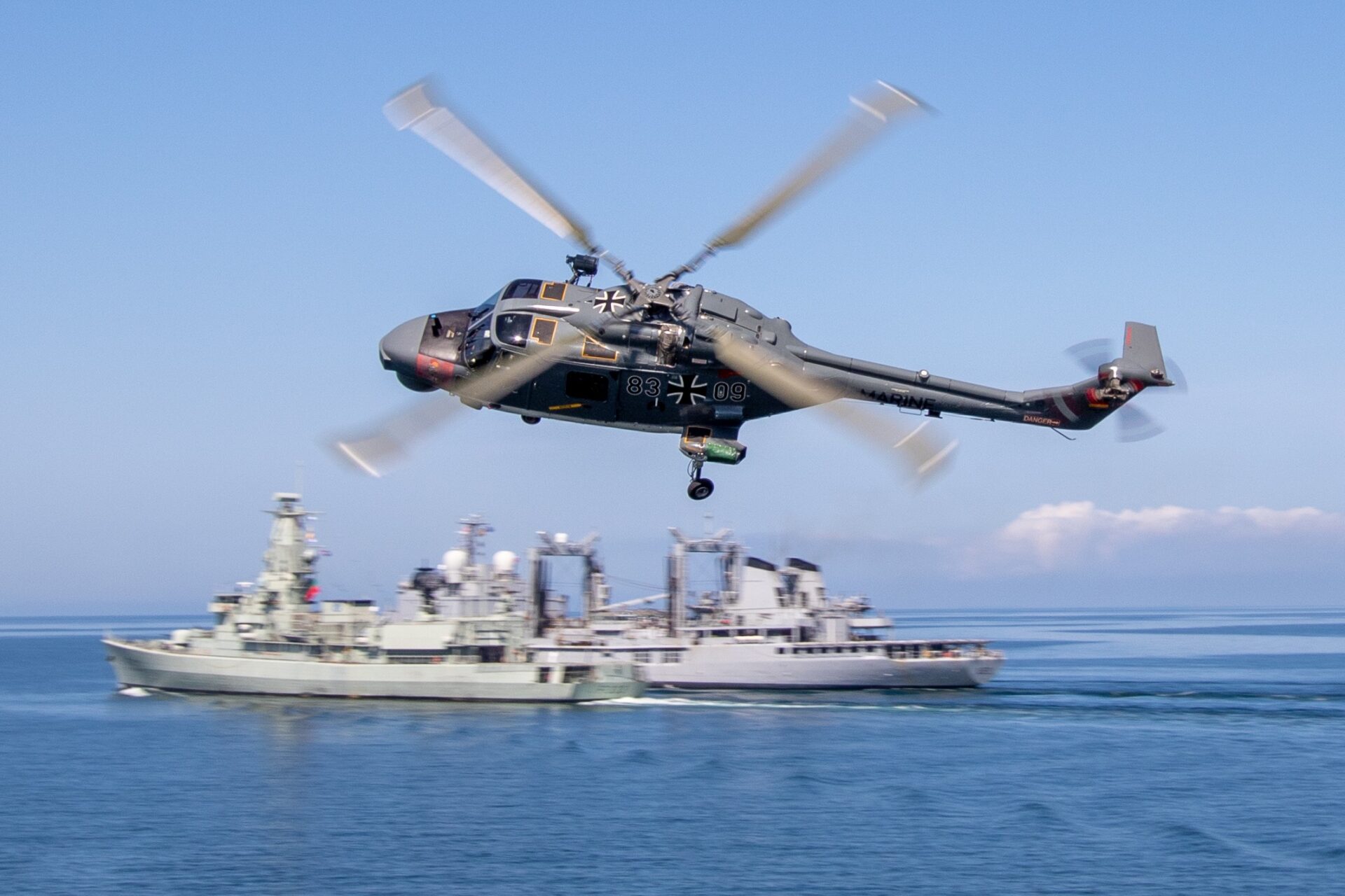 Deutscher „Sea Lynx“ vor französischem Flottentanker „Somme“ und portugiesischer Fregatte „Bartolomeu Dias“. Foto: Michael Nitz