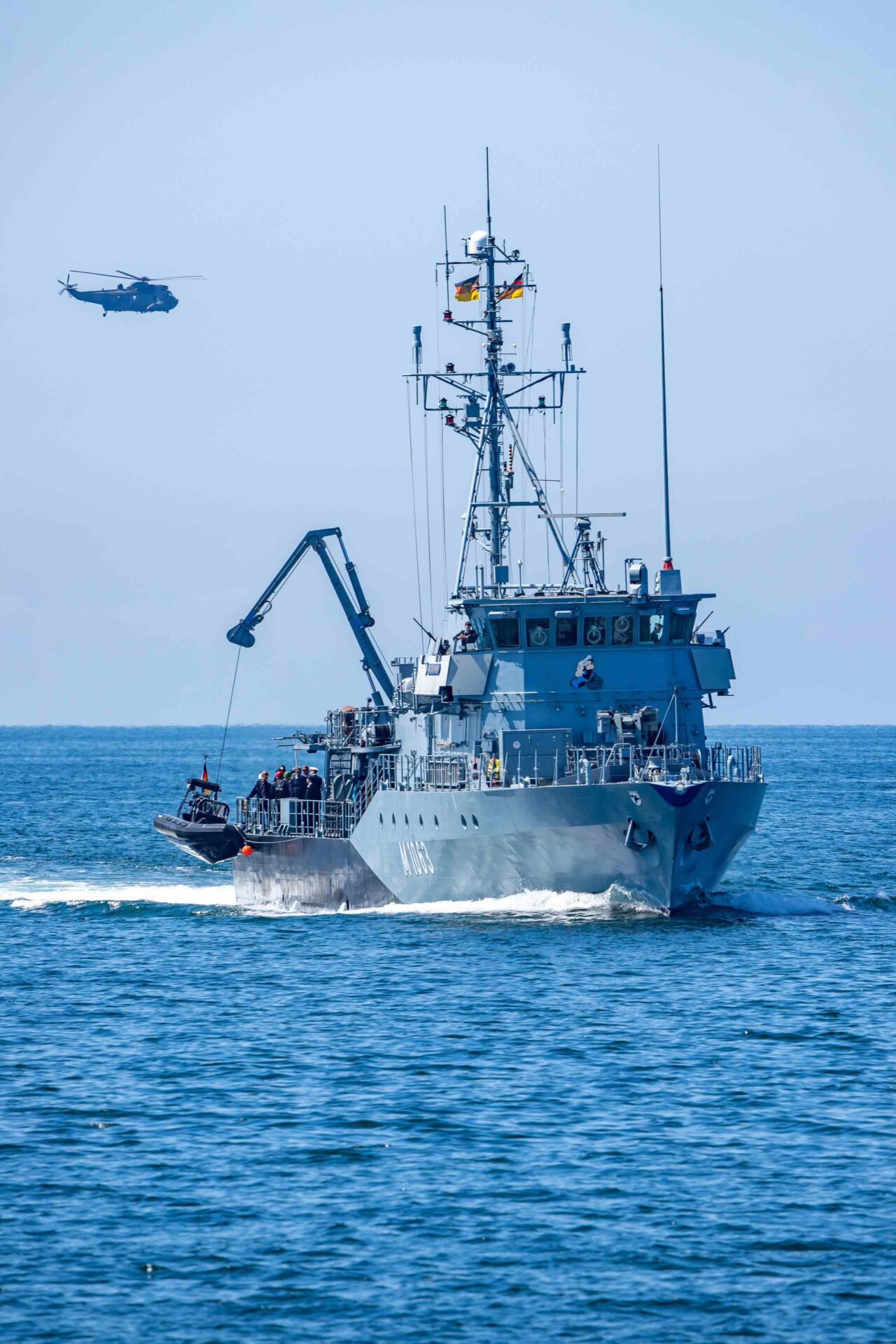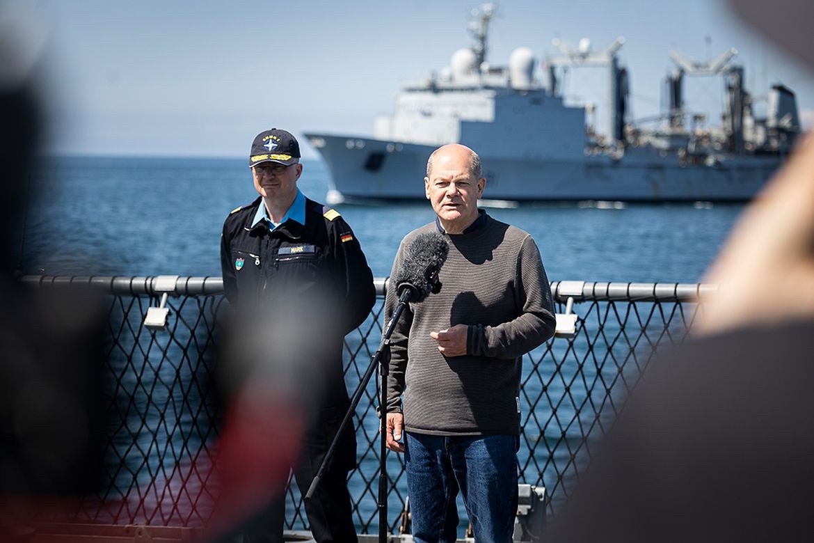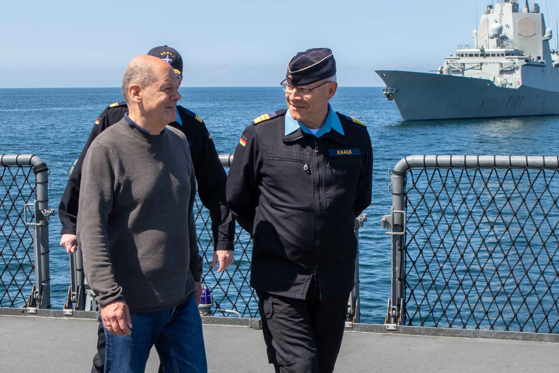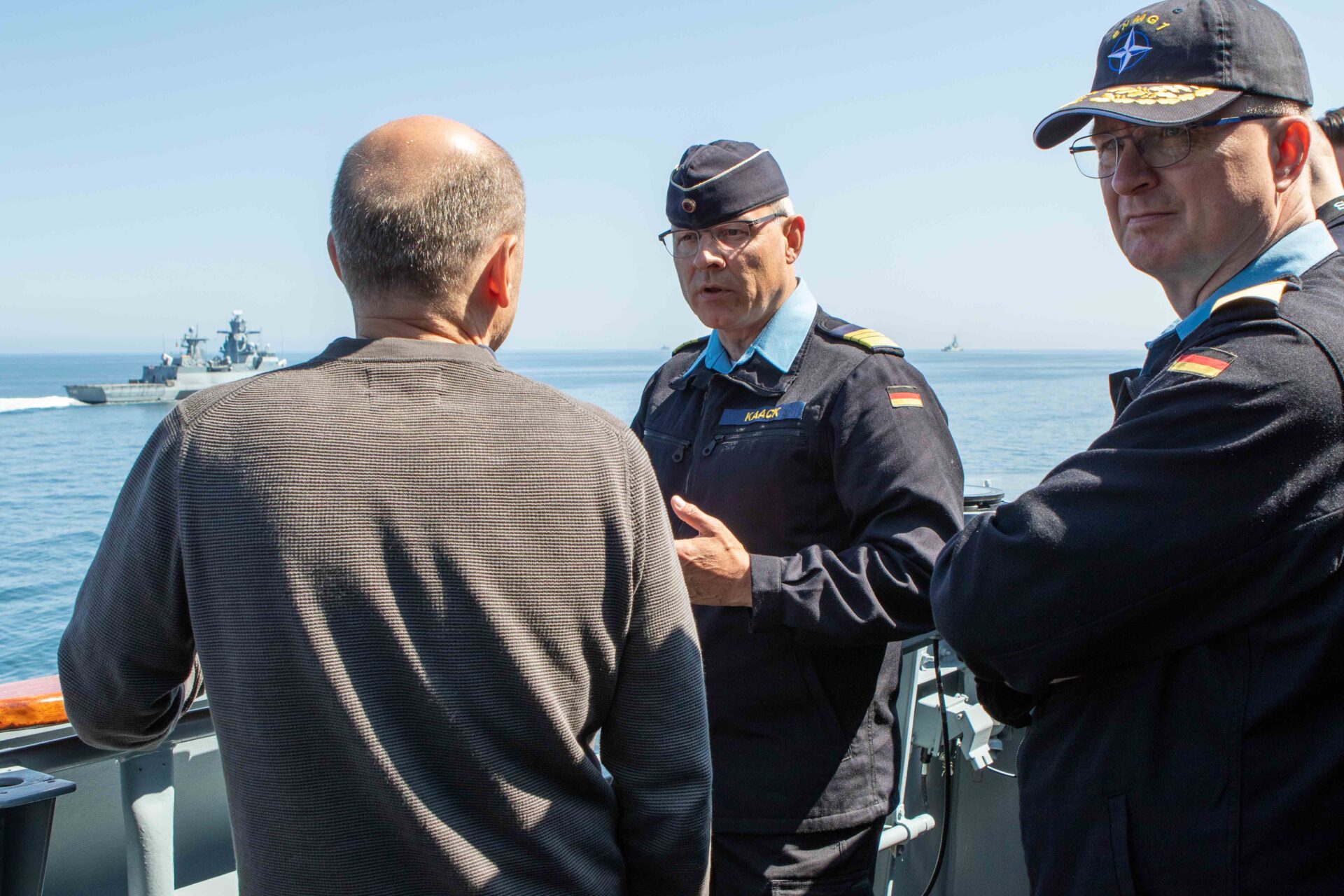 Auf See verfolgte Scholz mehrere Übungen, an denen das U-Boot U33, die Korvette „Oldenburg“ und das Minenjagdboot „Bad Bevensen“ beteiligt waren. Zusätzlich nahmen der französische Flottentanker „Somme“ und die spanische Fregatte „Alvaro de Bazan“ teil. Außerdem war ein Boardingteam der portugiesischen Marine auf der Korvette „Oldenburg“ zu sehen. Darüber hinaus waren Eurofighter und Tornados der Luftwaffe dabei.