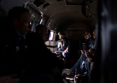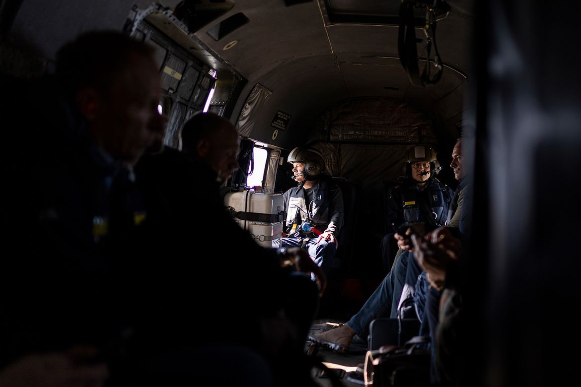 Bundeskanzler wird mit einem Marinehubschrauber zur Fregatte ausgeflogen. Foto: Bunderegierung/Kuegeler