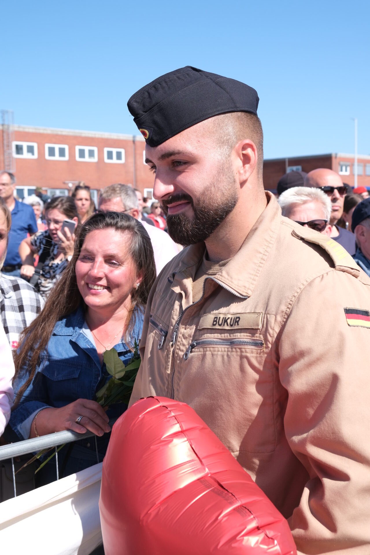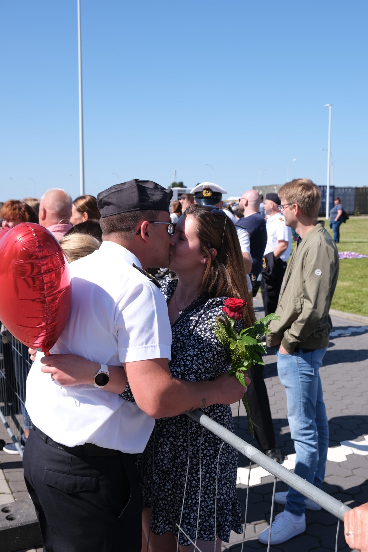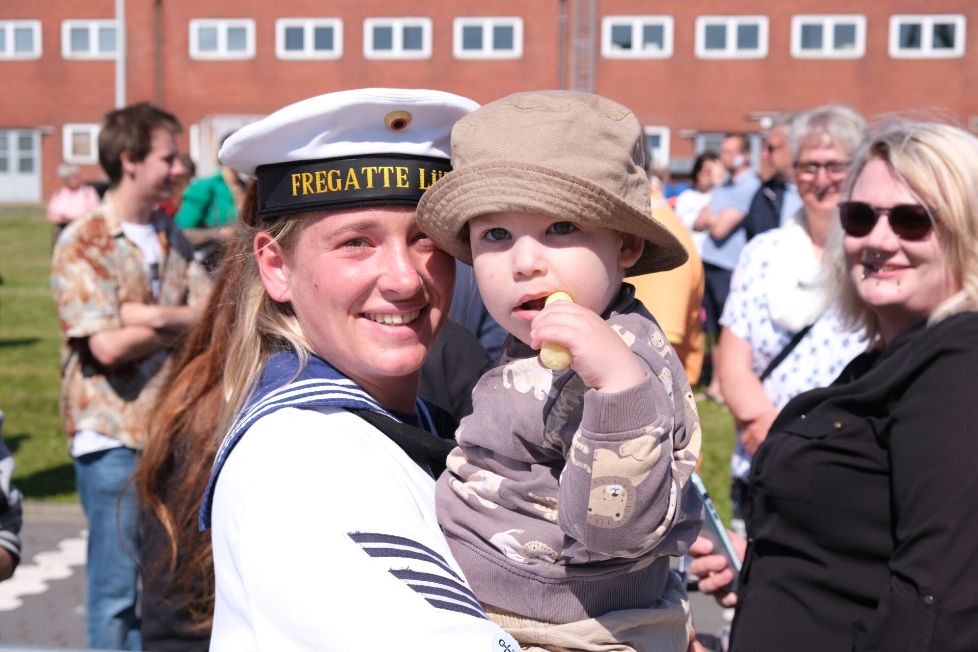 Unter den üblichen Klängen des Typhons passierte die "Lübeck" die Hafeneinfahrt, begleitet von zwei "Sea LynX" Hubschraubern aus Nordholz. Mit lautem Jubel , Freudentränen und Applaus machte die "Lübeck" fest. Das Wiedersehen wurde in einem Fall auch für einen Heiratsantrag gewählt.