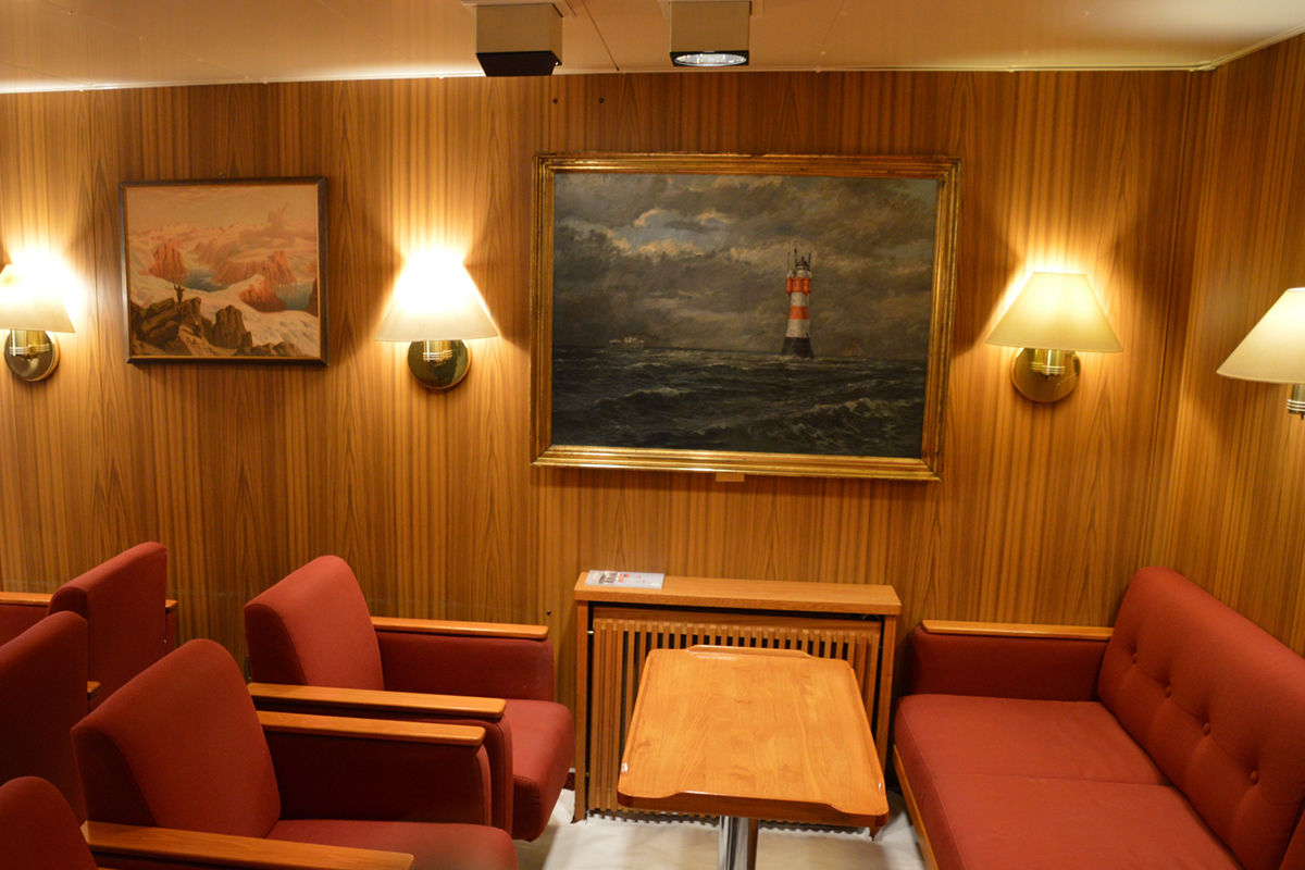 „Die "Polarstern" ist ein Forschungseisbrecher. Er wurde 1982 in Deutschland gebaut“,[ds_preview] erklärt Andreas Pluder beim Rundgang, der vom sogenannten Blauen Salon bis hoch auf die Brücke und runter bis unter den Rumpf führt. Das Schiff sei jetzt seit über 40 Jahren in Betrieb und für sein Alter in sehr gutem Zustand, urteilt Pluder. 1977 hat er mit der Seefahrt angefangen, ist von 1999 bis 2004 als Chief, also als Leitender Ingenieur, auf der "Polarstern" gefahren und heute Technischer Inspektor der Reederei F. Laeisz. „Ich sorge dafür, dass das Schiff pünktlich losfährt und die Technik unterwegs funktioniert.“