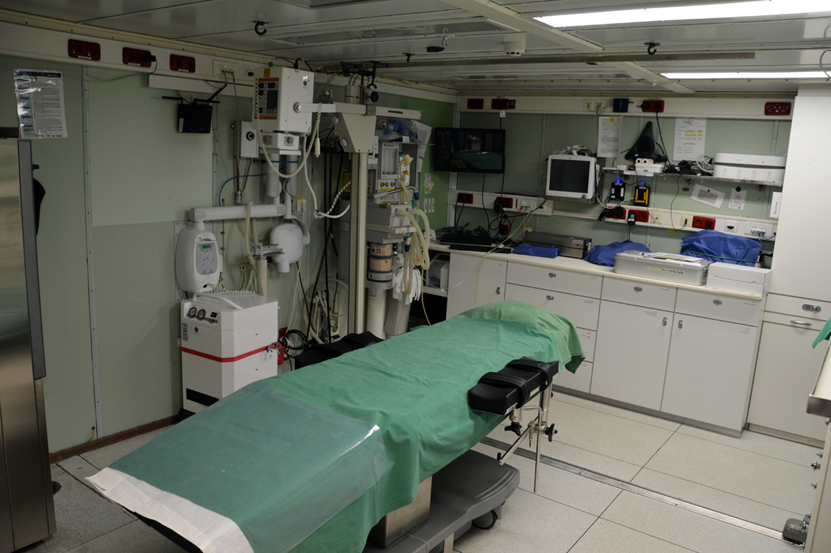 Mit anderen Blessuren hat Petra Gößmann-Lange zu tun. Sie ist die Bordärztin auf der "Polarstern" und zeigt das Hospital mit Röntgengerät und OP-Tisch, auch eine Zahnarzt-Ausrüstung hat die Chirurgin für die Expeditionen im Schrank.