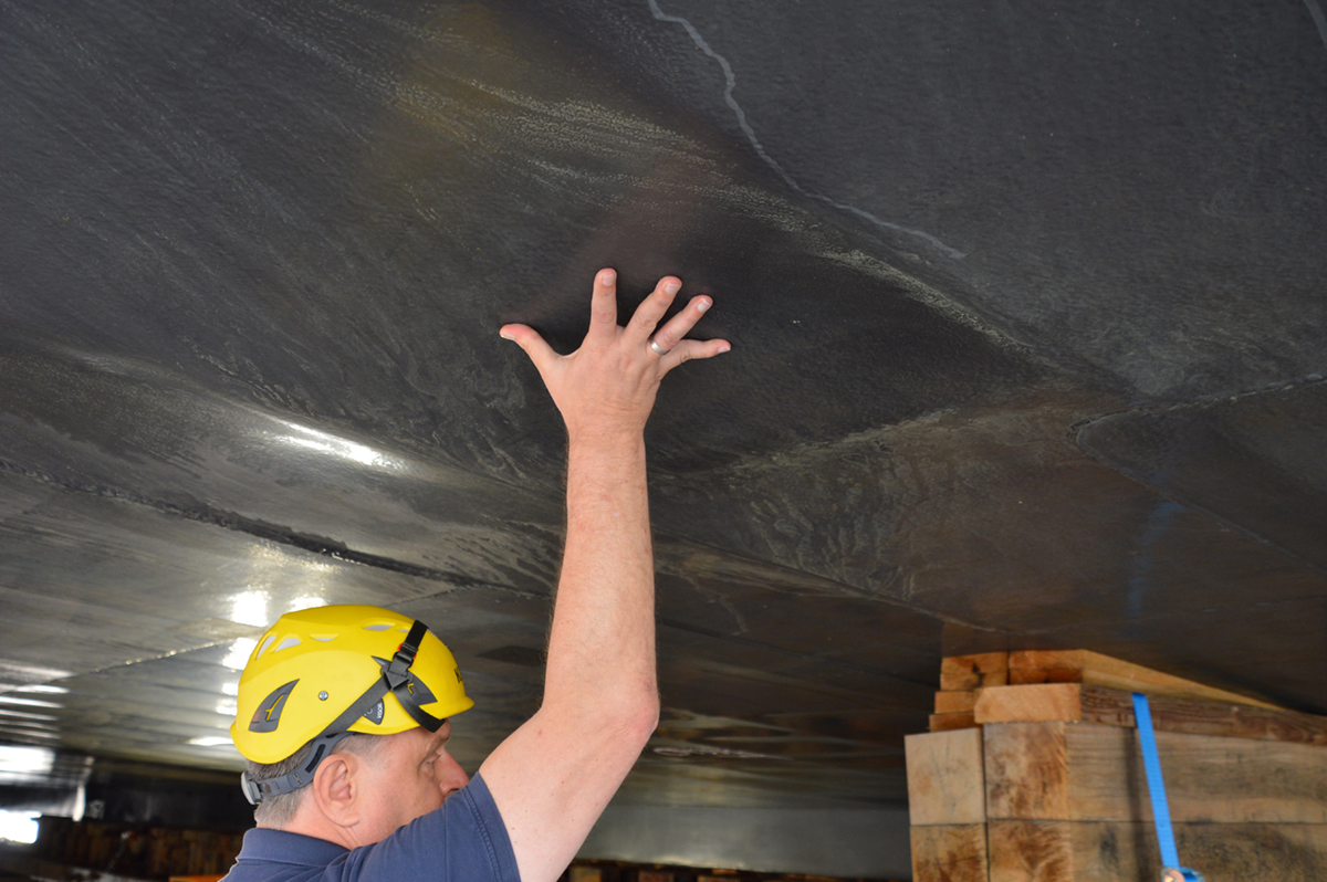Im Dock werden auch Beulen der "Polarstern" sichtbar, besser noch kann man sie auf der glatten Stahlhaut fühlen. Denn das Eis werde vorne runtergedrückt und komme mit Wucht hinten wieder hoch, so Pluder. Die Beulen würden sogar in einem „Beulenplan“ festgehalten und der Klassifikationsgesellschaft DNV vorgestellt. Die entscheide dann, ob eine Stelle ausgebessert werden müsse.