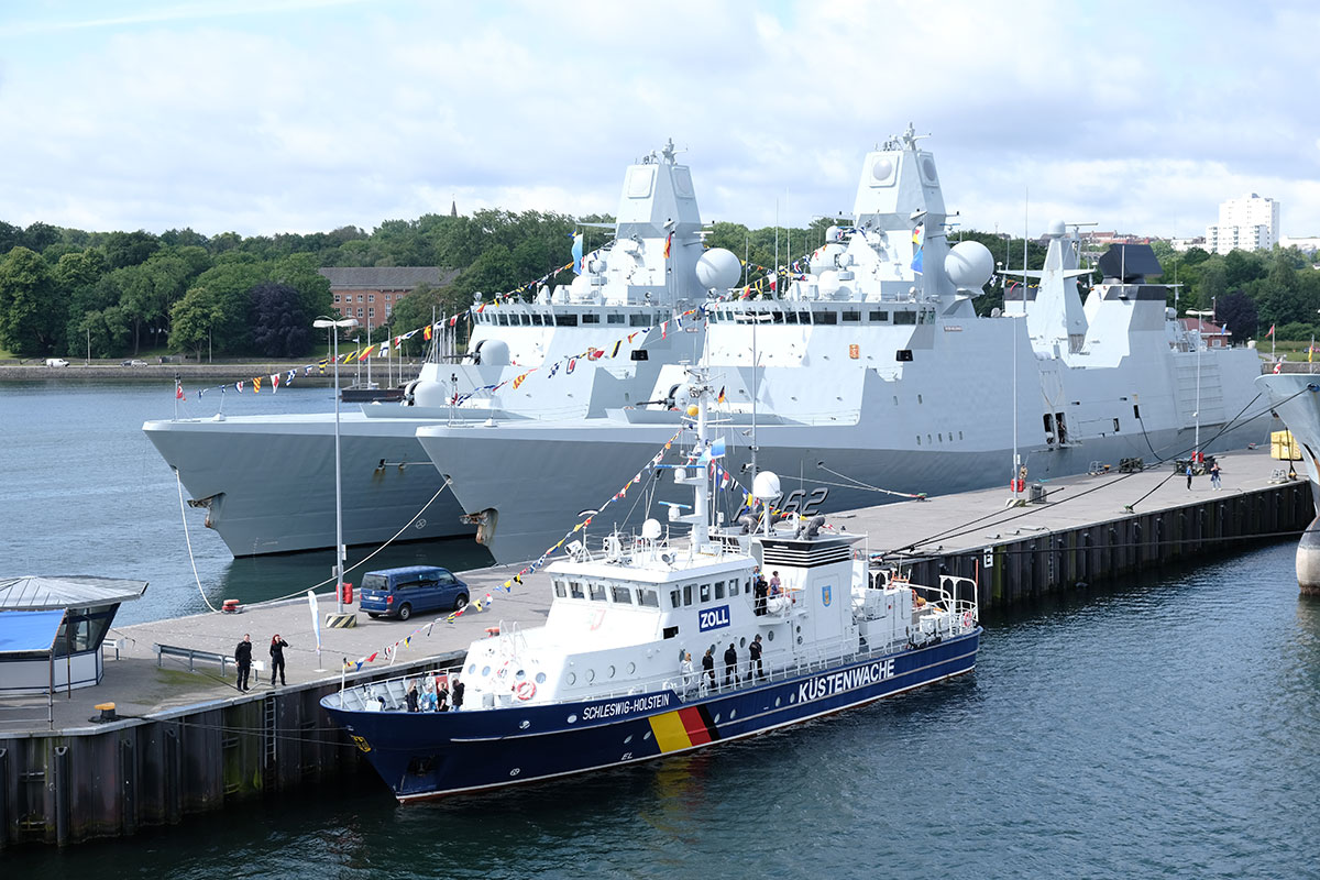 The Danish frigates "Peter Willemoes" and "Niels Juel" - in the foreground the customs cruiser "Schleswig-Holstein"