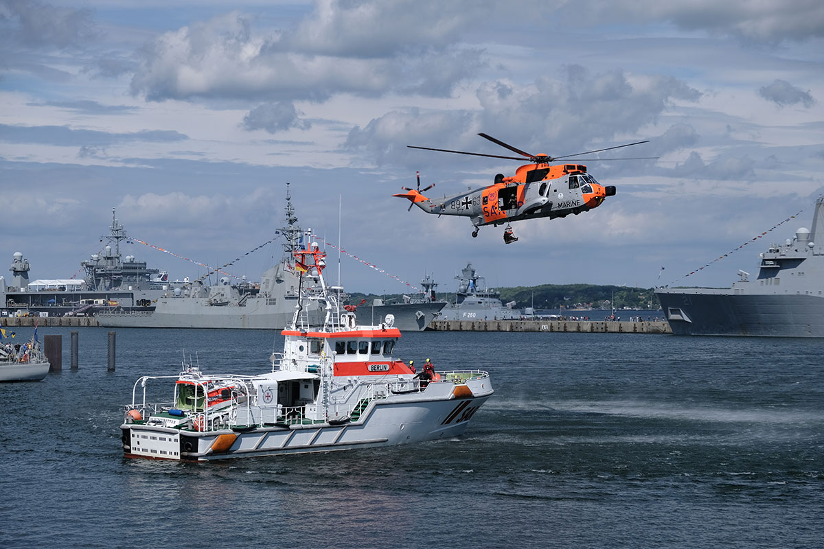 German Navy SeaKing during rescue exercise with DGzRS cruiser "Berlin"
