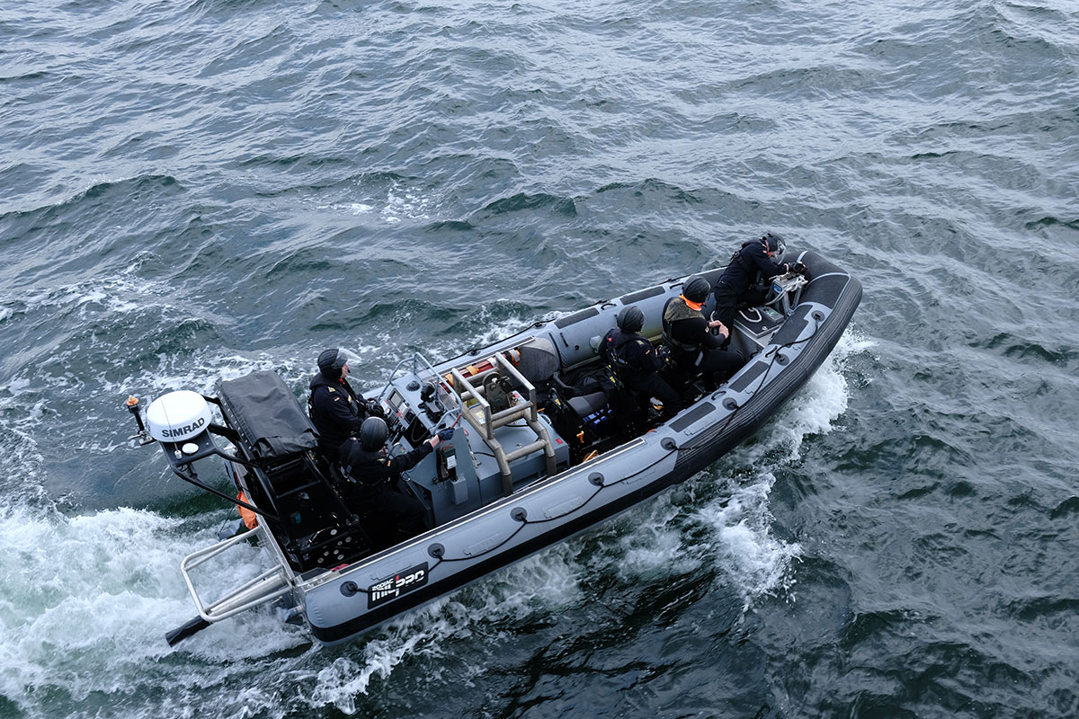 Speedboat of the tender "Rhein" during a rescue exercise