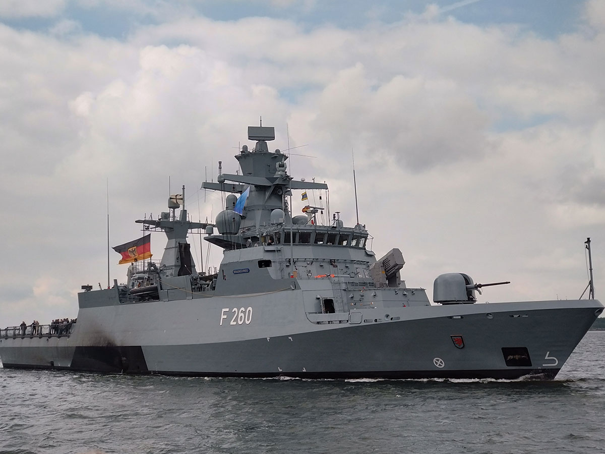 Departure of the corvette "Braunschweig" with the Inspector of the Navy on board