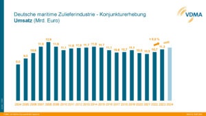 The outlook for shipbuilding suppliers was good for the future, with turnover rising by 5.8 per cent to EUR 11.3 billion in 2023. With order intake stagnating in 2023, however, good capacity utilisation is expected due to investments in climate-neutral shipping. However, the complaint heard time and again is that EU bureaucracy is hampering production. "Last year's stagnating order intake will not stabilise, but was probably just a short "breather" after the very strong order intake in previous years. Shipowners are now not only continuing to invest in newbuildings, but above all in the modernisation and retrofitting of the existing fleet. The IMO requirement for climate neutrality is certainly a strong driver here, especially in the global service and spare parts business," said Martin Johannsmann, Chairman of the Executive Board of VDMA Marine Equipment and Systems and Managing Director of SKF Marine GmbH. "As an industry, we have developed the necessary technological solutions with foresight and in a timely manner, but we also sense that the enormous volume of necessary retrofits could not only reach capacity limits, but also monetary limits for operators," he added.
