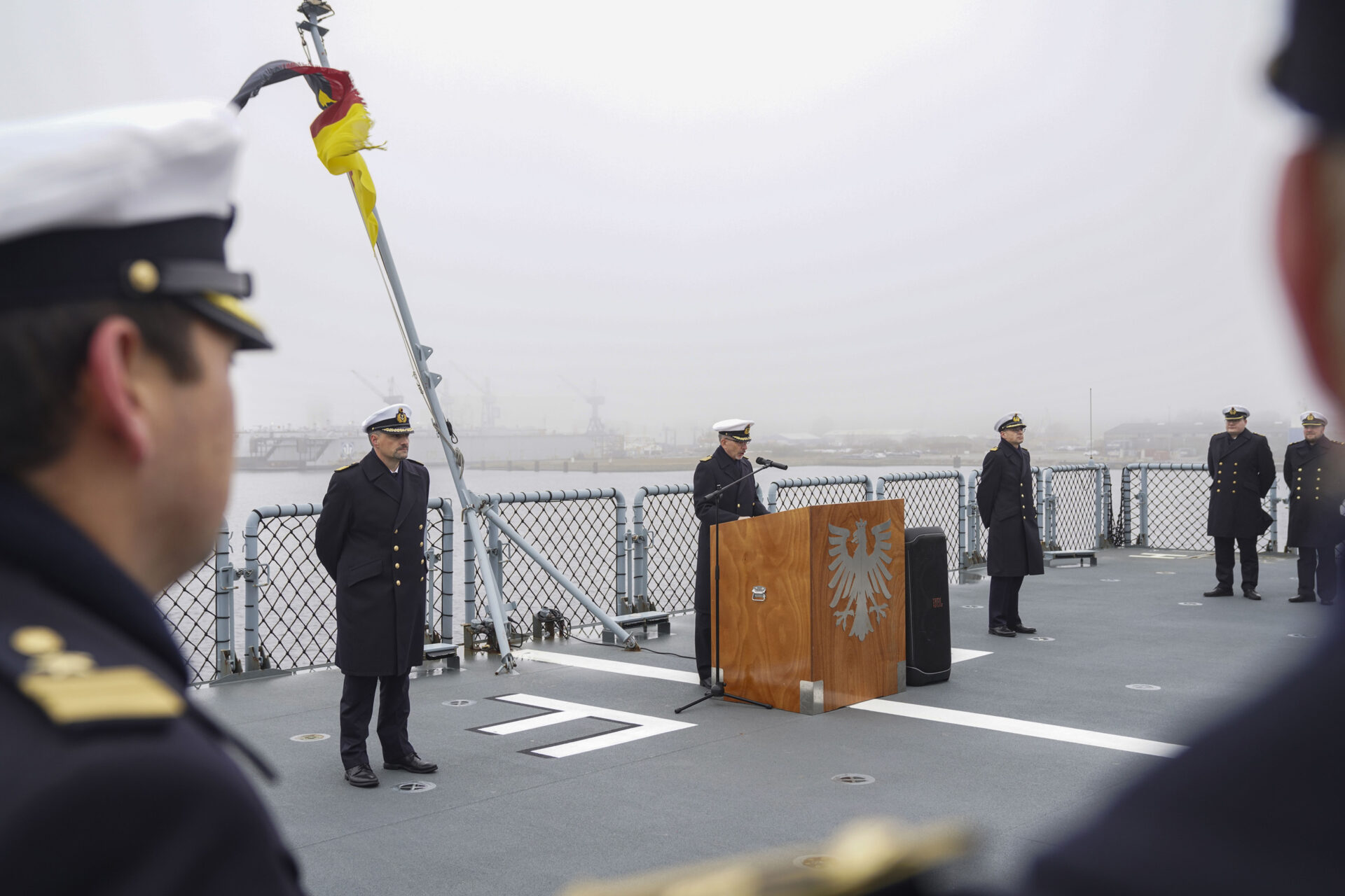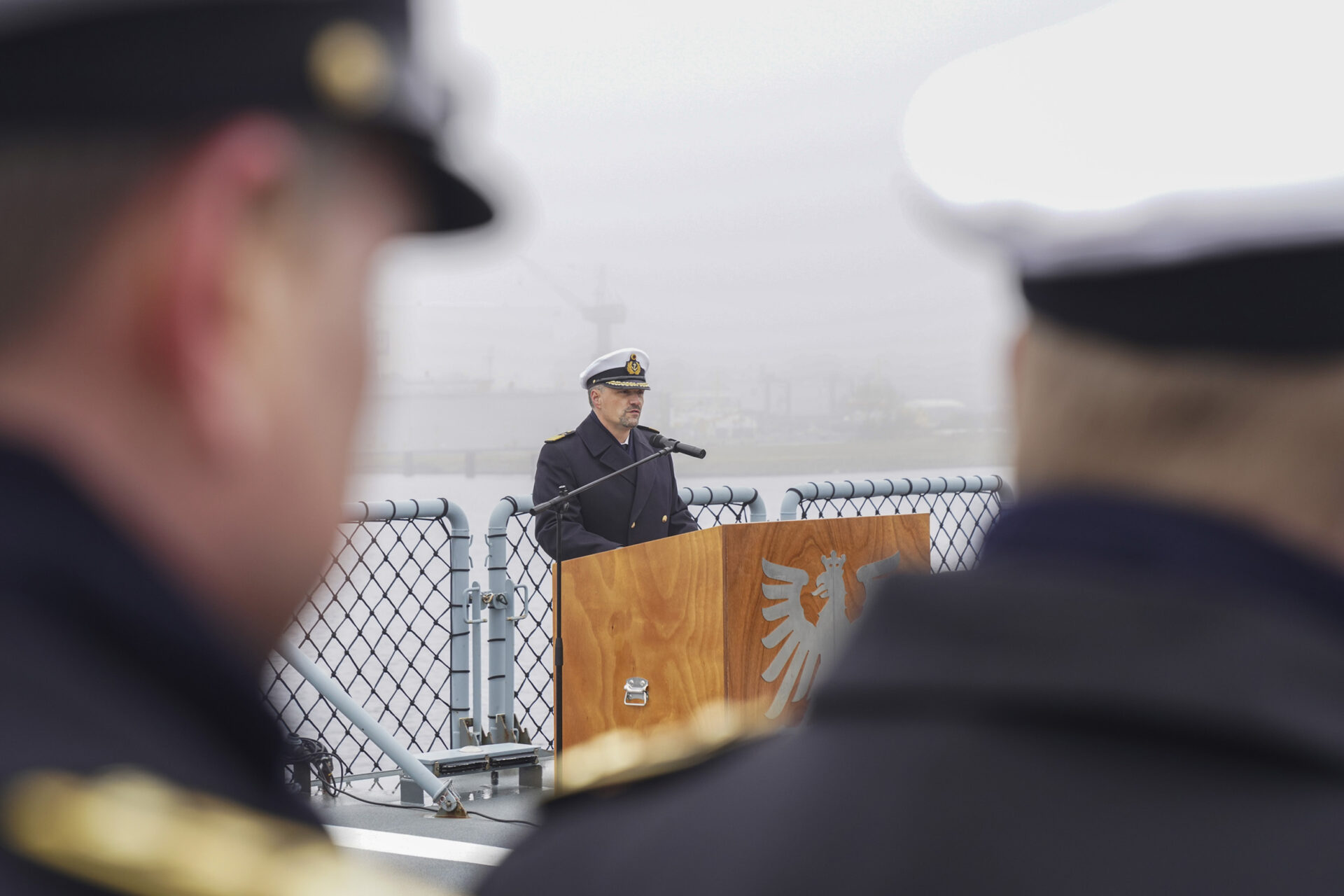 "After five years in command of the EGV 'Frankfurt am Main', it is time for me to leave the bridge and hand over the helm to my successor," says the outgoing commander, Frigate Captain Weisensee.