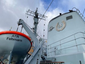 Over the past few years, the ship has travelled countless nautical miles throughout Europe, from the far north to Iceland and Norway, east to Finland and the Baltic states, south to Spain and west to Ireland and Scotland. The exclusively civilian crew has experienced many a beautiful harbour, but also a lot of bad weather. However, nobody really knows what the future holds for the "Fehmarn". The only ray of hope for a successor is currently the SAMSe project, which is still in the analysis phase.