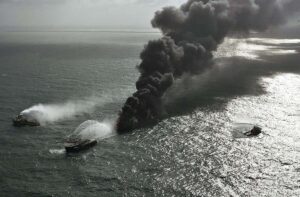 "X-Press Pearl" off Colombo, May 2021 Photo: Sri Lanka Air Force