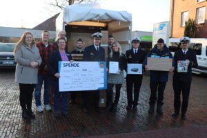 Donation to the youth welfare organisation. from left: Kea Ostermann, Andreas Deneser, Tanja Kiefer, Claas Ohnesorge, Chief Petty Officer Müller, Frigate Captain Koch, Chief Petty Officer Klink, Neele Otten, Lieutenant Commander Westphal, Chief Petty Officer Hoer, Lieutenant Lundszien.