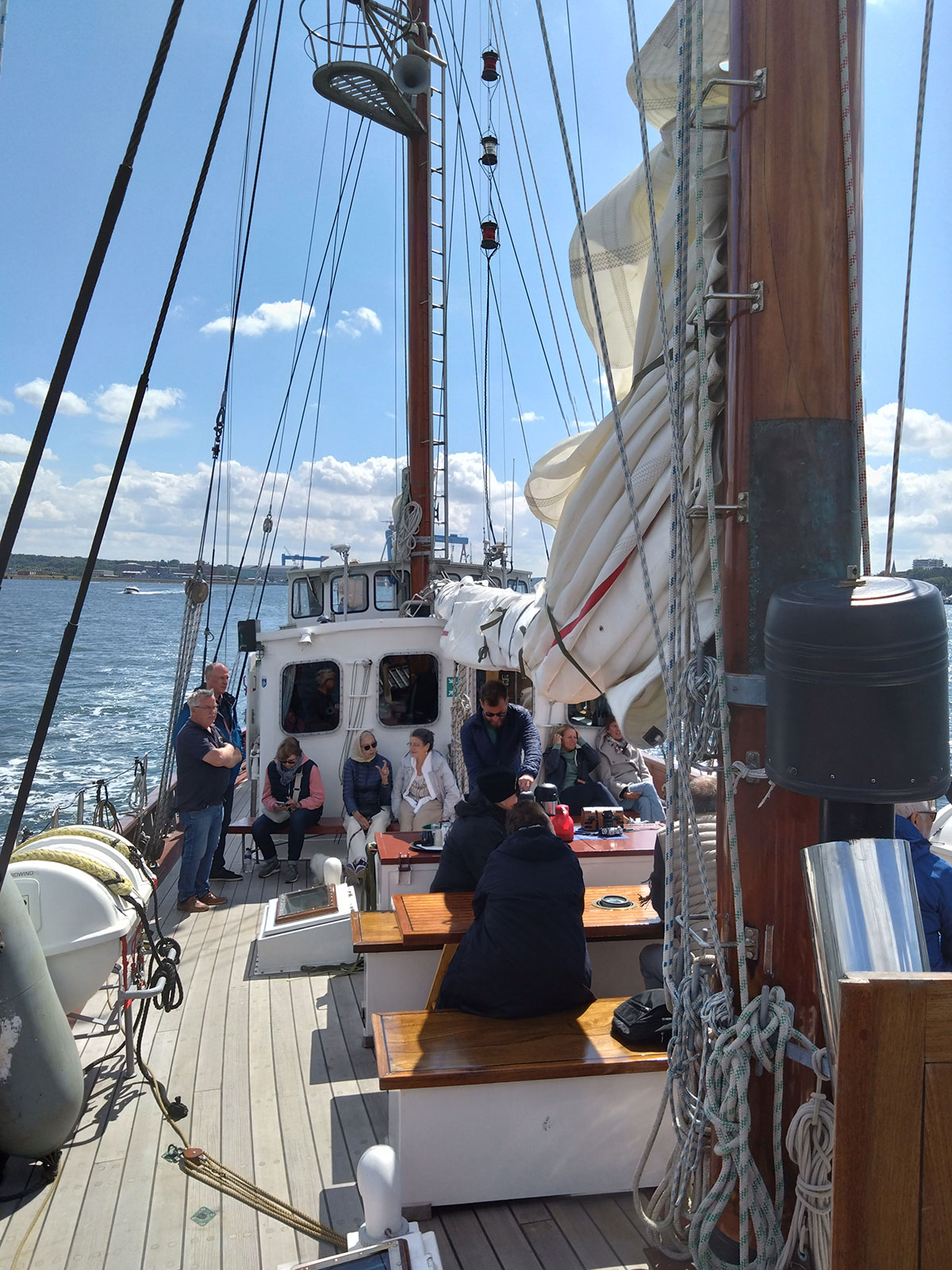 But there are concessions and regulations. For example, in August 2019, the BMDV (Federal Ministry of Digital and Transport) announced the funding guideline on grants for the preservation and safe continued operation of traditional shipping. This funding guideline provides incentives for the implementation of construction and outfitting measures on traditional ships. It is intended to preserve the knowledge and cultural asset of the "traditional ship" in the long term and create an appropriate level of safety. Nevertheless, its continued existence is at risk, with an estimated 30 to 40 traditional ships having been lost since 2019. This is not only due to official requirements, but also to bureaucratic hurdles and the coronavirus pandemic. All the better that the marineforum editorial team was able to sail on the "Nordwind". Here are a few impressions of the old ketch. The "Nordwind" was part of a planned series of wartime fishing cutters that were to be used as outpost and warning boats. Planked with oak and rigged as a ketch, the Nordwind was laid down in 1945 at the Burmester shipyard in Bremen, completed in 1948 and acquired in 1951 by the new sea border defence, which wanted to use her as a training boat. As there was no German Navy at the time and therefore no "Gorch Fock", she was also used for protocol purposes, e.g. by German President Theodor Heuss in 1953 during Kiel Week. The "Nordwind" has therefore been a permanent guest in Kiel for over 70 years. When the German Navy was established in 1956, the "Nordwind" joined the navy and was used as a sailing training ship for officer cadets at the Mürwik Naval School from 1958 to 2006. Under pressure from the Federal Audit Office, the Ketsch then had to be decommissioned. The German Navy and the Military History Research Office agreed that the "Nordwind" had to be preserved, which is why the German Naval Museum in Wilhelmshaven took over the ship and still operates it today. The traditional sailing ship with its volunteer crew can be chartered for day trips and tours lasting several days. Take a look here too - from our friends at the German Naval Museum: www.marinemuseum.de