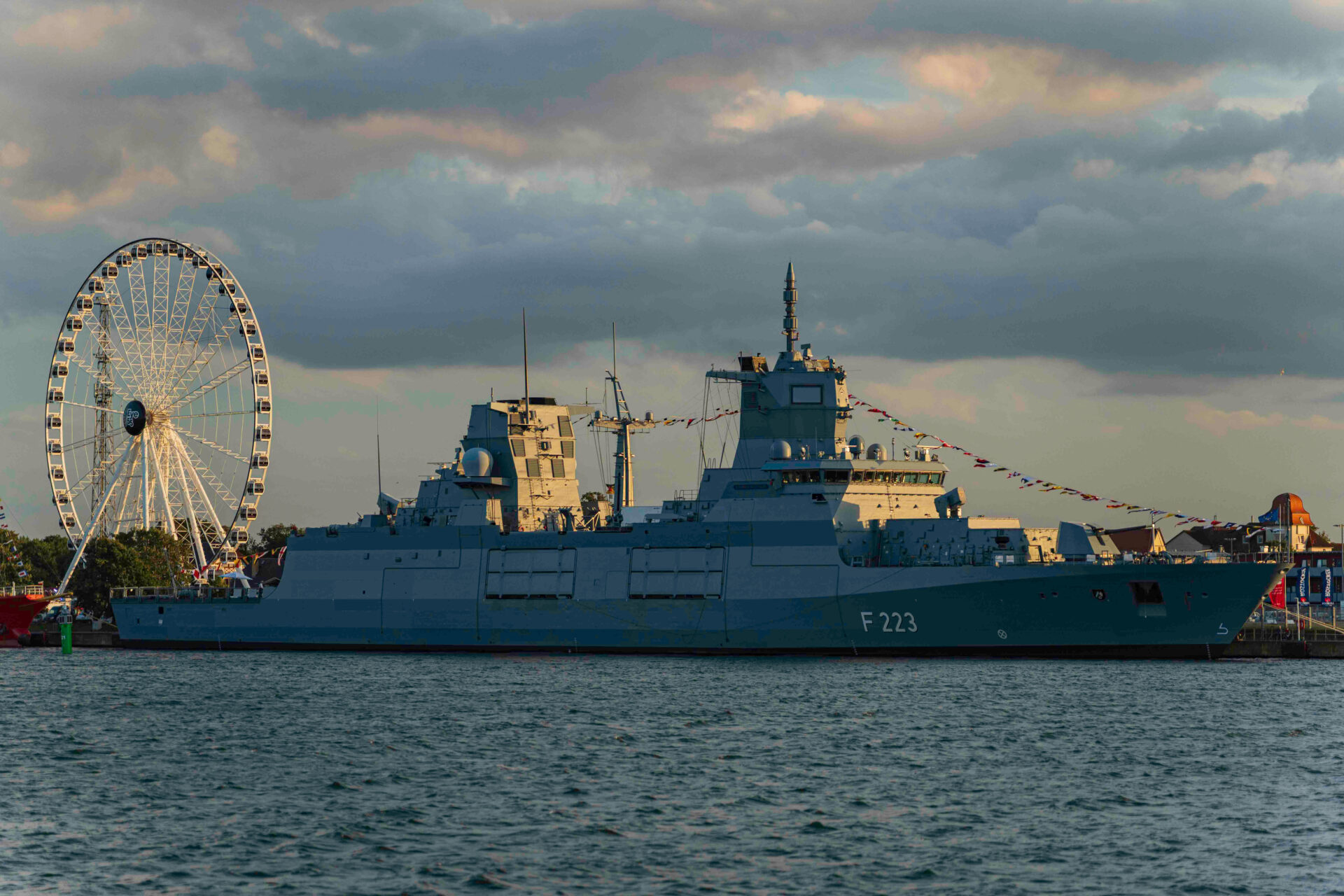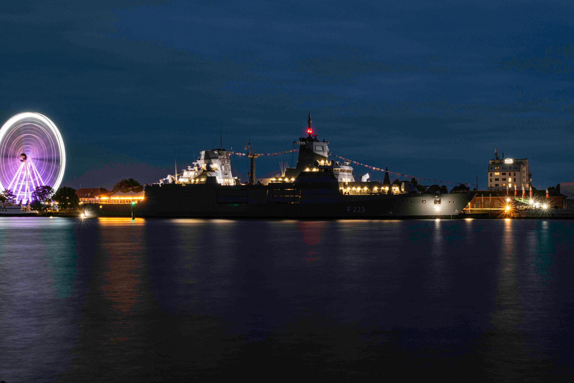 Fregatte „Nordrhein-Westfalen“ vor Riesenrad. Foto: Daniel Angres