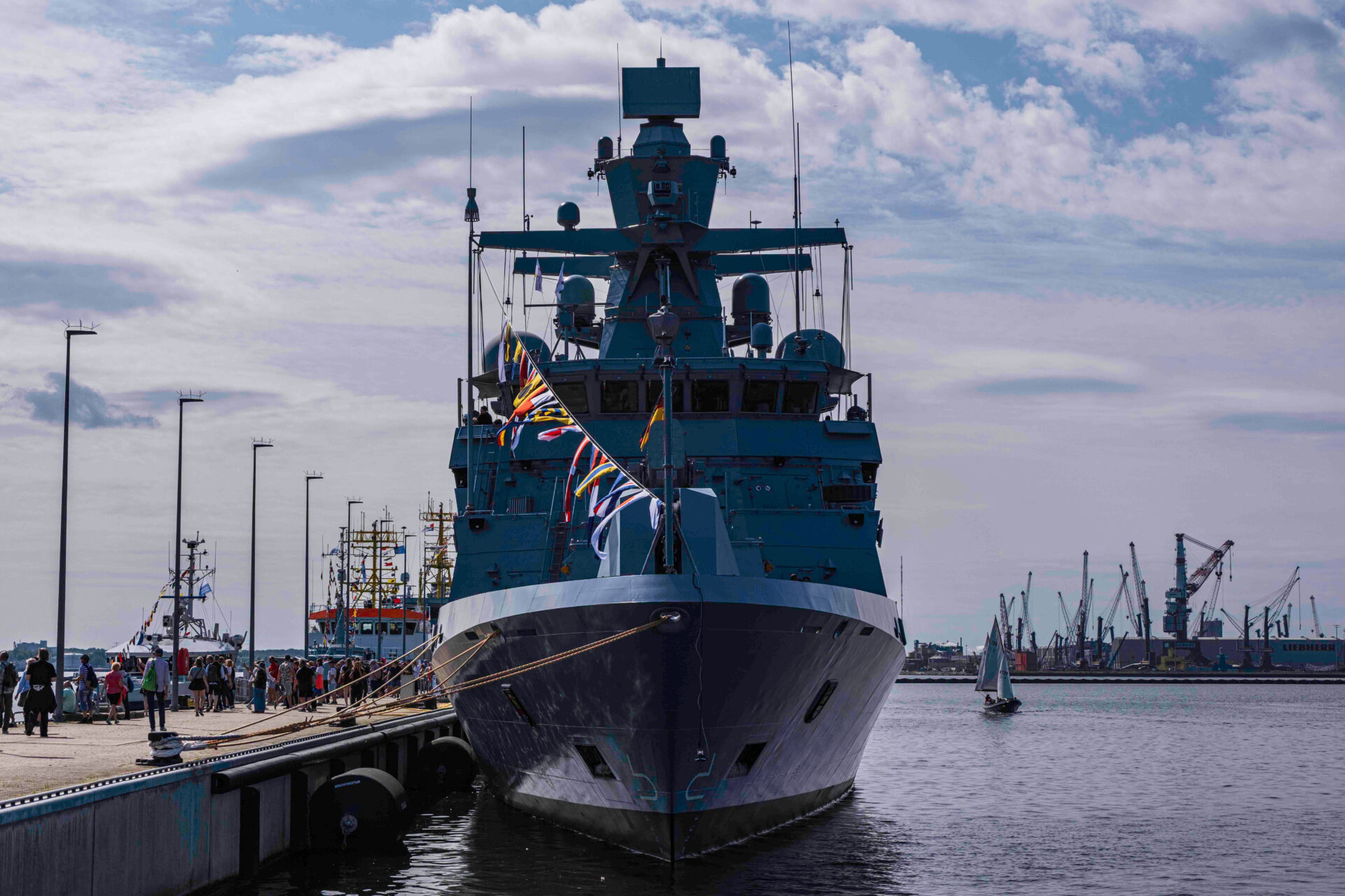 Auf der anderen Seite der Warnow, am Passagierkai in Warnemünde, öffnete die Fregatte Nordrhein-Westfalen beim Open Ship ihre Decks. Die Besatzung stand den Gästen Rede und Antwort und gab einen Überblick über Technik, Ausrüstung und Einsatzprofile. Für viele Besucherinnen und Besucher war es die seltene Gelegenheit, ein modernes Kriegsschiff hautnah zu erleben und sich ein Bild von den vielfältigen Aufgaben der Deutschen Marine zu machen.