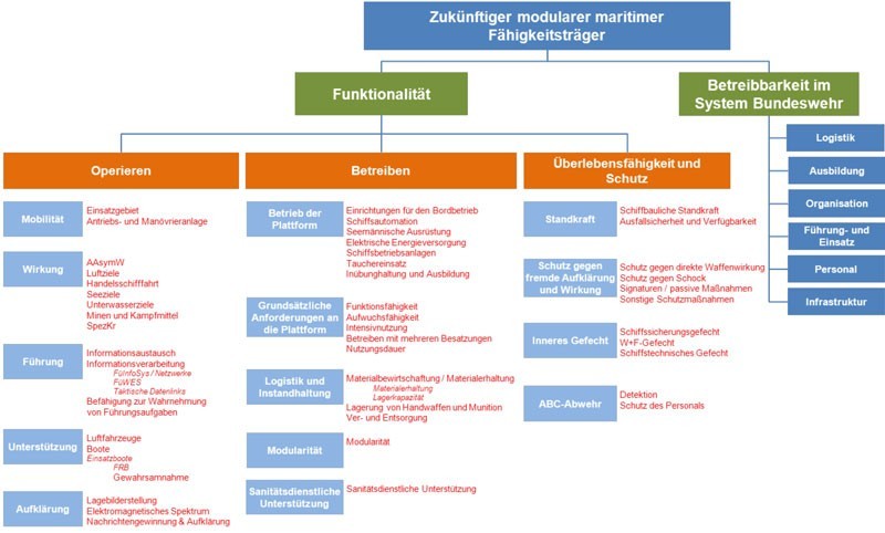 Modularer maritimer Fähigkeitsträger – Auftrag und Aufgaben der Bundeswehr erfordern ein breites, militärisches Fähigkeitsspektrum, das flexibel an spezifische Einsatzerfordernisse angepasst werden kann. Die Unterschiedlichkeit und Unvorhersehbarkeit heutiger und zukünftiger Einsatzszenarien hat die Zahl der dazu benötigten Fähigkeiten anwachsen lassen. Darüber hinaus ist es Erwartung der Politik, dass ihr eine größtmögliche Zahl an differenzierten, skalierbaren Handlungsoptionen bereitgestellt werden kann.