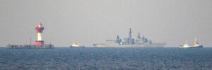 Schleppverband ex-"Karlsruhe" vor dem Kieler Leuchtturm. Foto: Michael Nitz