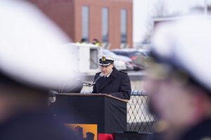 Am Donnerstag, den 20. Februar 2025, übergab der Kommandeur des 2. Fregattengeschwaders, Fregattenkapitän Jan Hackstein, das Kommando der Fregatte „Hamburg“ von Fregattenkapitän Andreas Schmidt an den neuen Kommandanten, Fregattenkapitän Alexander Timpf.