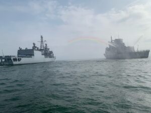 Fregatte Nordrhein-Westfalen begrüsst die Lübeck in der Deutschen Bucht
