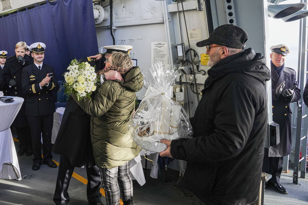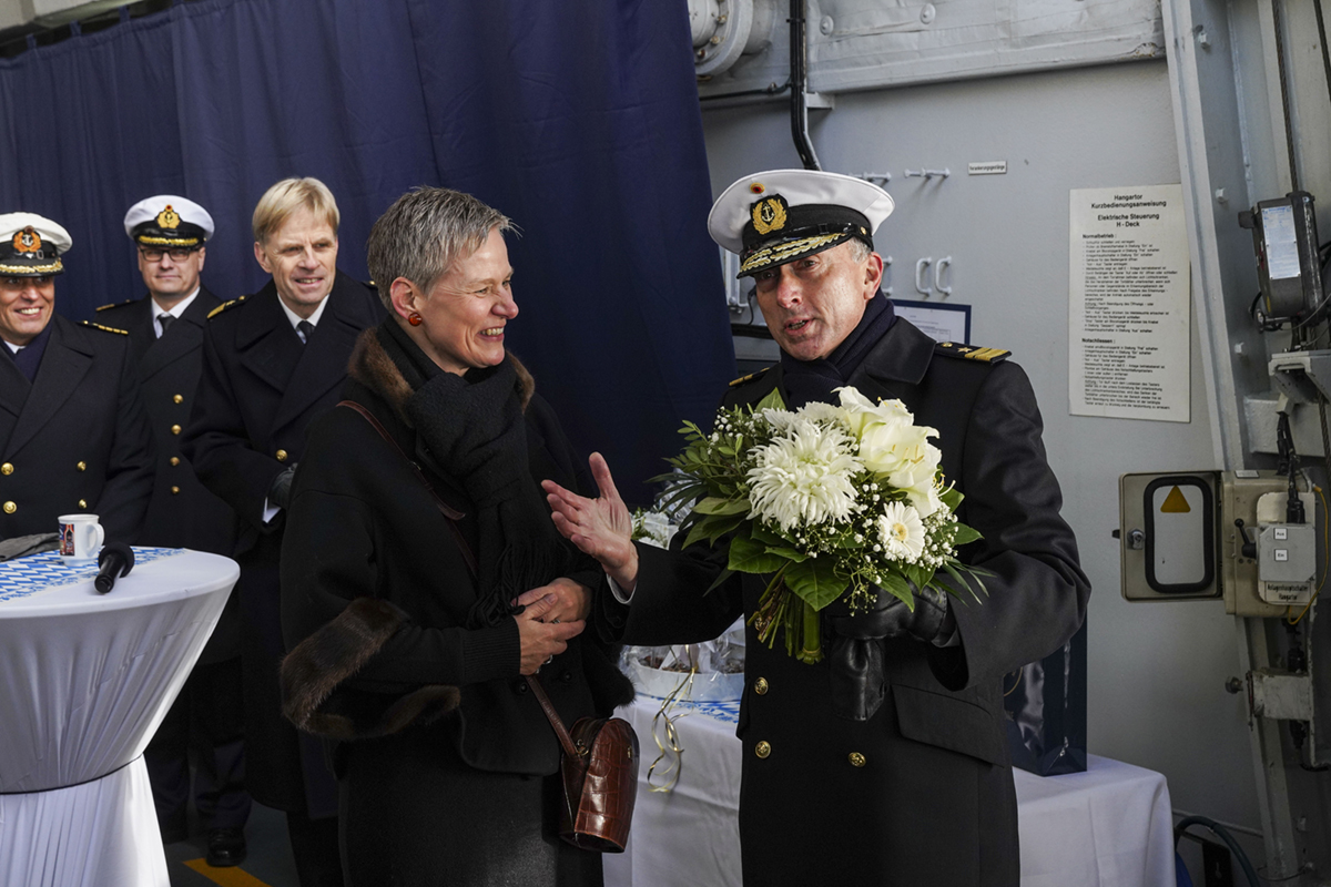 Beim Empfang auf der „Bayern“ gab es Geschenke für die Ehefrauen sowie die engen Mitarbeiter von FA Schulz, Foto: Bundeswehr/Leon Rodewald