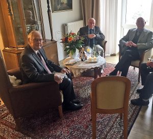 Gemeinsam mit seinem aus Bad Homburg angereisten Sohn, Professor Uwe Stüben, tauschten wir Erinnerungen aus und stießen mit einem Glas Champagner auf das Wohl des Jubilars an. Die MOV wünscht dem Jubilar weiterhin stabile Gesundheit, Lebensfreude und Glück, das sich ja aus allen guten Rahmenbedingungen speist.