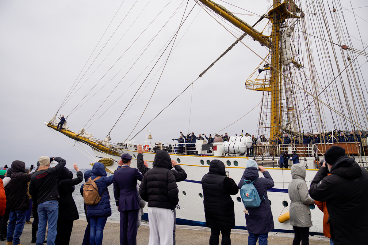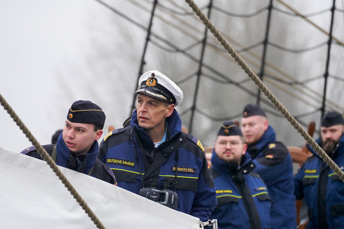 Rund 250 Marineoffizieranwärter und -anwärterinnen der Crew 2024 werden im Rahmen ihrer seemännischen Basisausbildung erste Erfahrungen an Bord des Großseglers sammeln. Unter ihnen sind auch Kadetten aus Kamerun, Tunesien, Kolumbien, Senegal, Togo, Ghana, der Republik Korea und dem Irak. An Bord des Segelschulschiffes erlernen die Lehrgangsteilnehmenden das grundlegende seemännische Handwerk. Sie erfahren in der Praxis die Bedeutung von Teamwork und Kameradschaft, bevor es für sie an die Universitäten der Bundeswehr in Hamburg und München in den akademischen Teil ihrer Ausbildung geht.