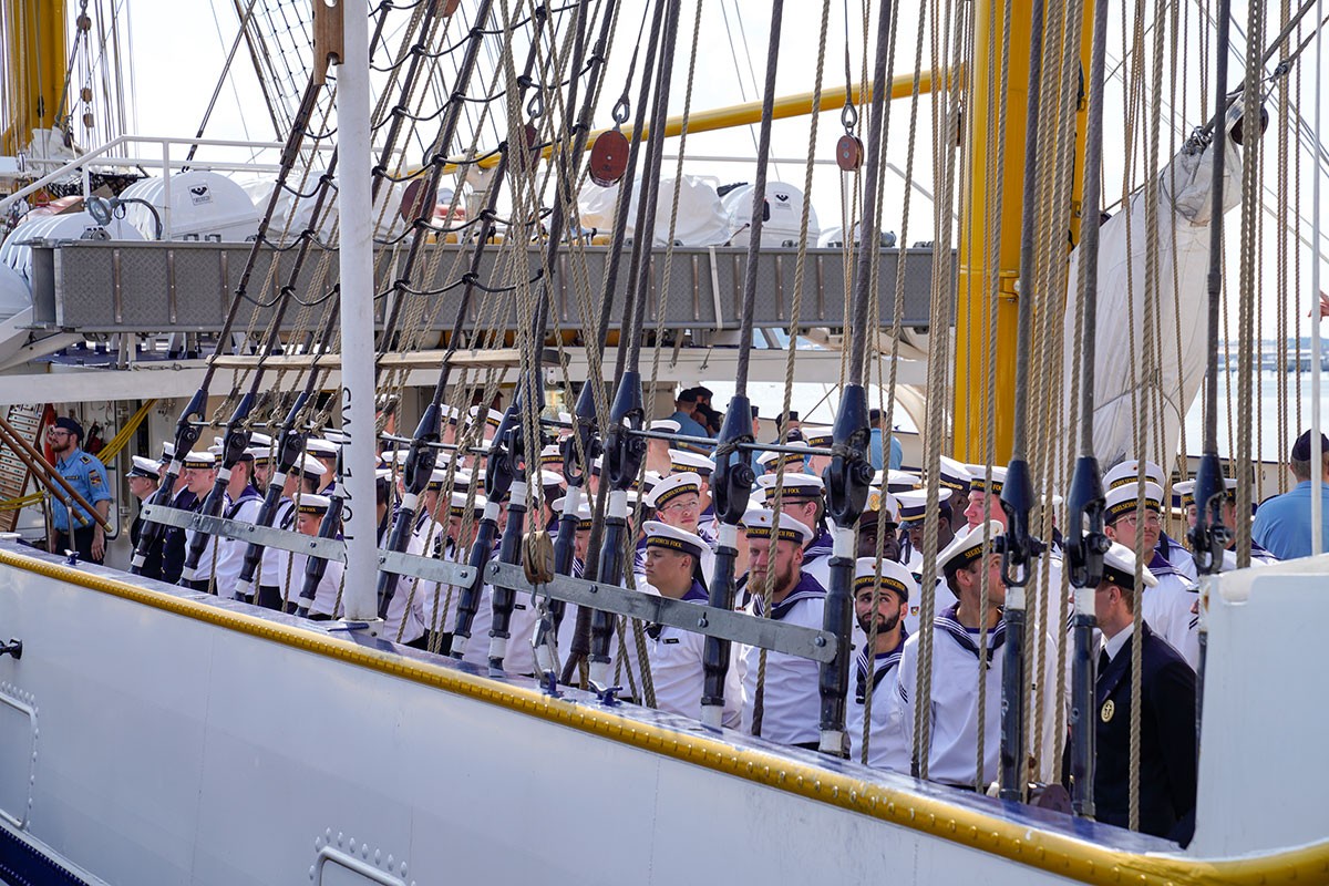 Die Deutsche Marine feiert in diesem Jahr ihr 175-jähriges Bestehen. Das Segelschulschiff der Deutschen Marine war zum Geburtstag der Deutschen Marinen am 14. Juni nicht im Heimathafen Kiel und hat auch die Kieler Woche verpasst. Nun aber kommt die Dreimastbark nach rund vier Monaten und 7.000 Seemeilen wieder zurück. 250 Offizieranwärter und Offizieranwärterinnen der Crew 2022 wurden im Rahmen ihrer seemännischen Basisausbildung erste Erfahrungen an Bord des Großseglers vermittelt. Unter ihnen auch Kadetten aus Kolumbien, Frankreich, Togo, Kamerun und Senegal. An Bord des Segelschulschiffes erlernten die Lehrgangsteilnehmer das grundlegende seemännische Handwerk.