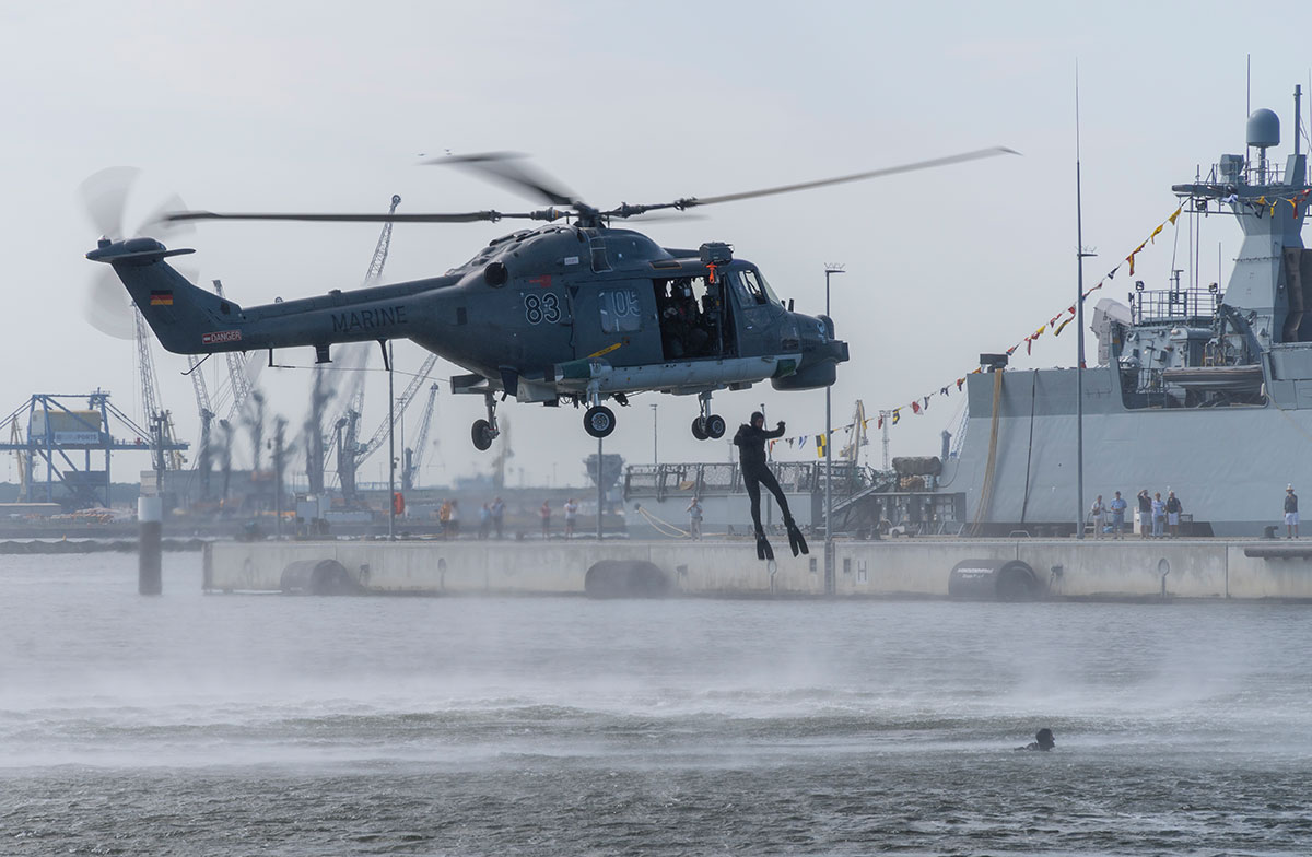 Besucherinnen und Besucher dürfen sich auf ein abwechslungsreiches Programm einstellen: Kreatives "Figurenschweißen" mit der Firma Liebherr, selbst hinter dem Steuer eines LKWs sitzen und hautnahes Erleben von landgebundenem grünem Großgerät, wie bspw. dem Leopard 2 A6, einen Puma, den Fennek und den Fuchs. Auch aus der Luft wird Action erwartet: Ein "Sea King" des Marinefliegergeschwader 5 aus Nordholz wird eine simulierte Seenotrettung im Hafenbecken des Stützpunktes zeigen. Außerdem zeigen die Helmtaucher ihr Können. Vier Feldküchen bekochen die Besuchenden und den musikalischen Rahmen bildet das Heeresmusikkorps Hannover. Das Familienbetreuungszentrum kümmert sich mit der U-Boot Hüpfburg um den "maritimen Nachwuchs". Zusammen mit der "Blaulichtfraktion" (THW, Bundes- und Wasserschutzpolizei sowie Stützpunktfeuerwehr) wird dies eine ereignisreiche Hanse Sail.