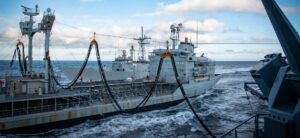 "Spessart" versorgt Fregatten "Hessen" und "General Pulaski". Foto: Bundeswehr/C.Kloecking