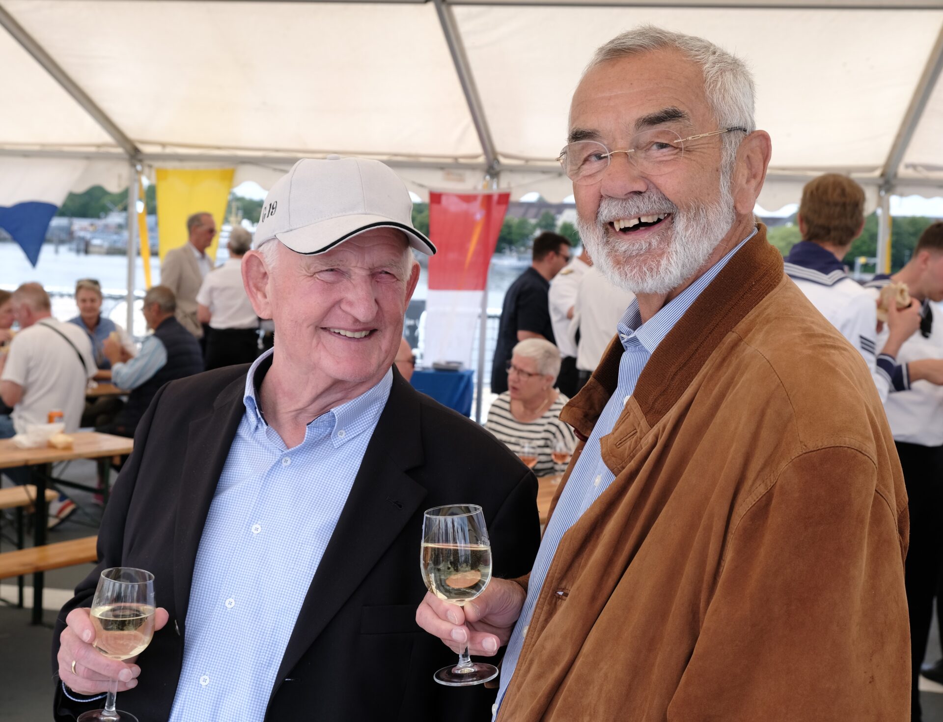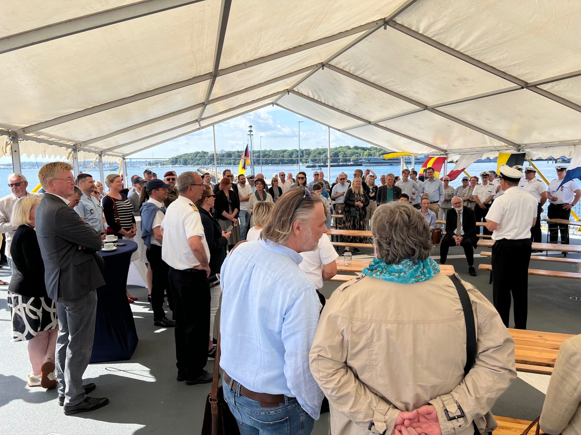 Der Kommandeur der Einsatzflottille 1 , Flottillenadmiral Sascha Rackwitz, hatte exklusiv eingeladen, das Auslaufen der Segler von Bord Tender "Rhein" zu beobachten. Und es kamen am Samstag - traditionell - sehr viele illustre Gäste der Einladung nach. Bei besten Wetter und einem hevorragenden Catering stellte die Besatzung Tender "Rhein" zum wiederholten Male auf dieser Kieler Woche ihr Können auch als Veranstaltungsplattform unter Beweis. Das "Sail Out" ist inzwischen zu einem festen Termin der maritimen Community geworden, möglich macht die Veranstaltung das Deutsche Maritime Institut (DMI), der Deutsche Marinebund (DMB) und die "Sektion Marine" im Deutschen Bundeswehrverband (DBBw). Immer dabei mit Sekt und Pralinen: Weinhandel Bremer Ratskeller https://ratskeller.de/.
