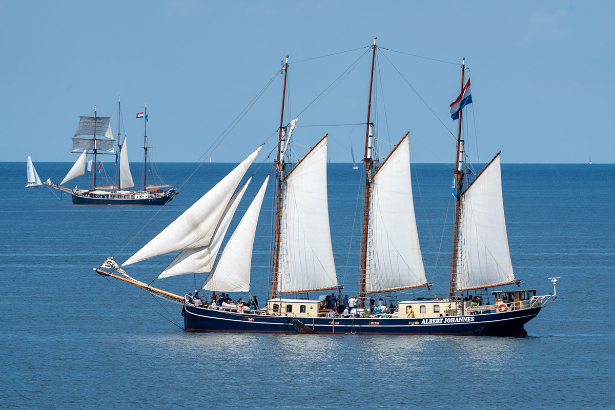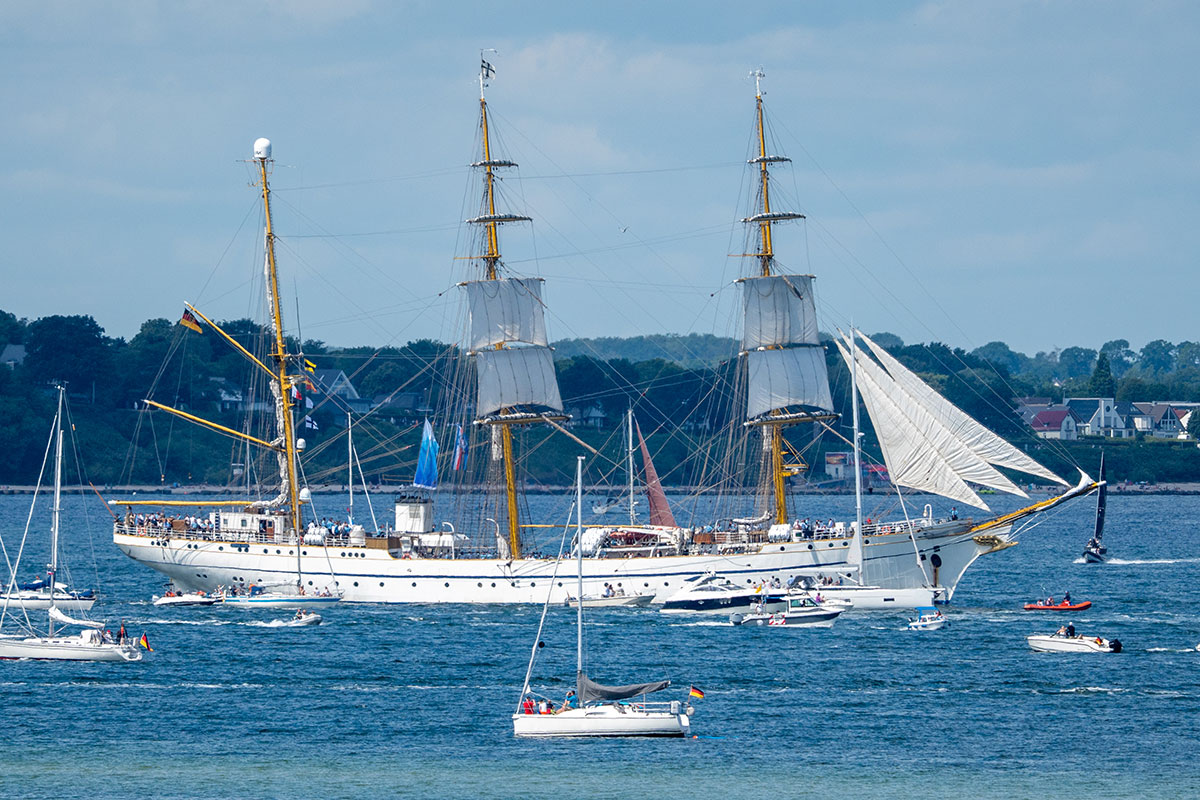 Gut besucht, im Hintergrund läuft die „Gorch Fock“ aus
