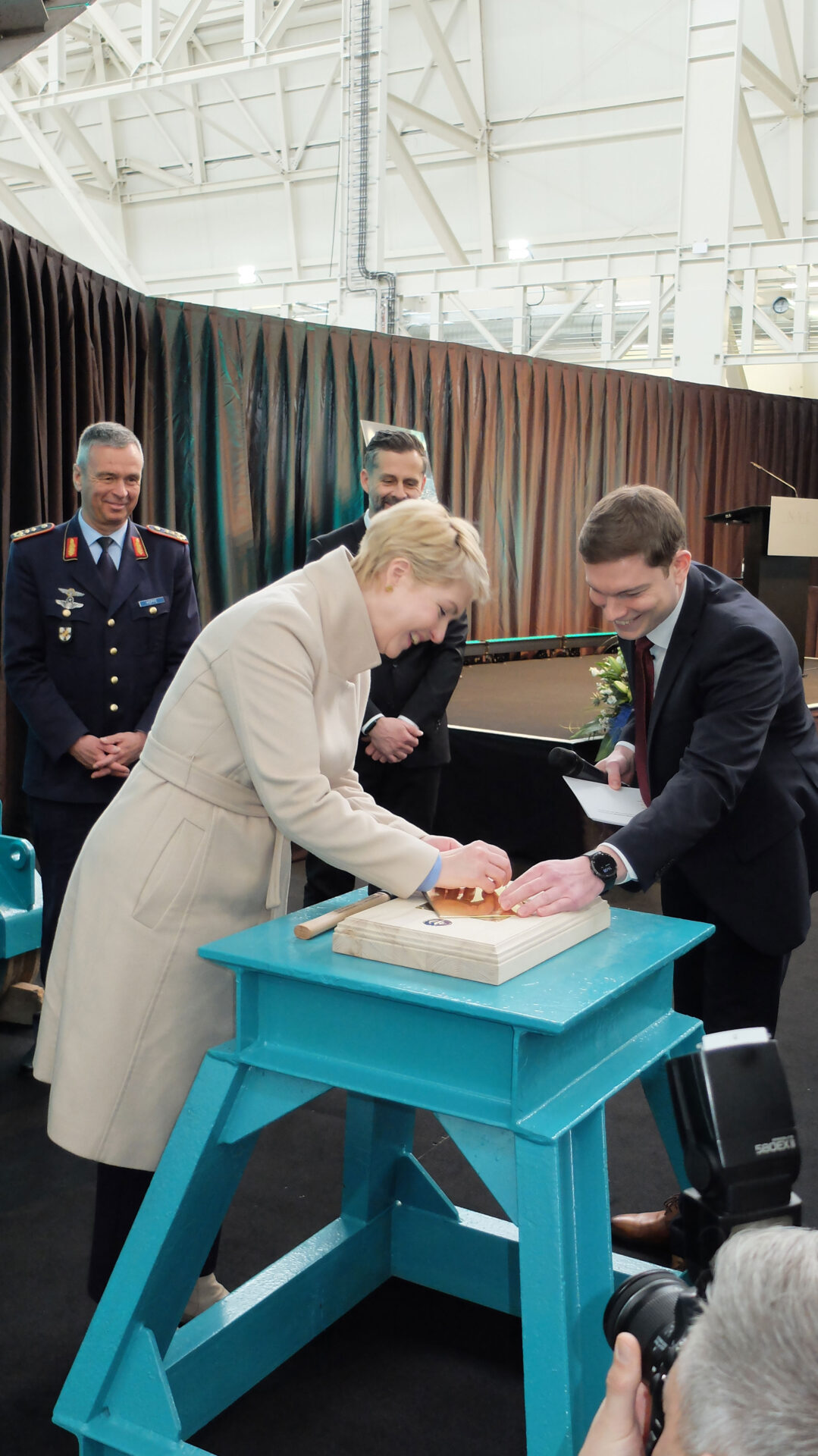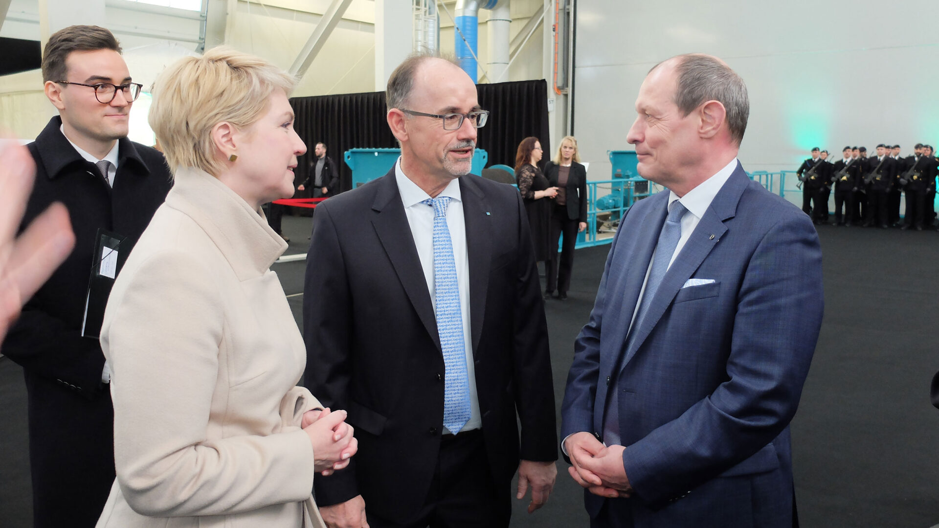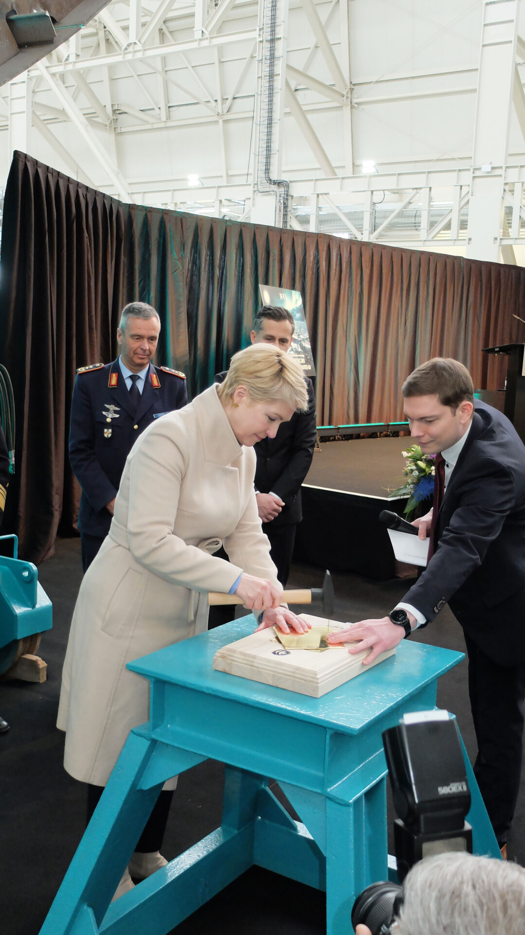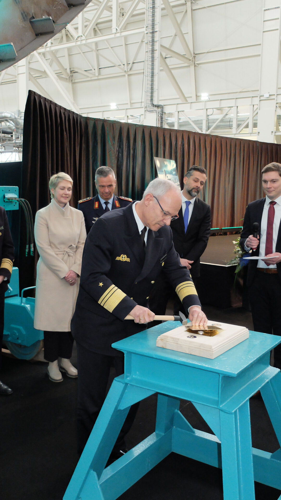 Tim Wagner, CEO der NVL Gruppe, bedankte sich bei der Ministerpräsidentin und ihrer Verbundenheit. Er könne sich zudem nicht daran erinnern, derart viele hochrangige Soldaten begrüßt zu haben. „Schiffbau ist Systemintegration von gesamtdeutscher Wertschöpfung“ sagte er. Auch wenn man im Zeitplan sei, die Bedrohung gebiete es, noch besser zu werden.