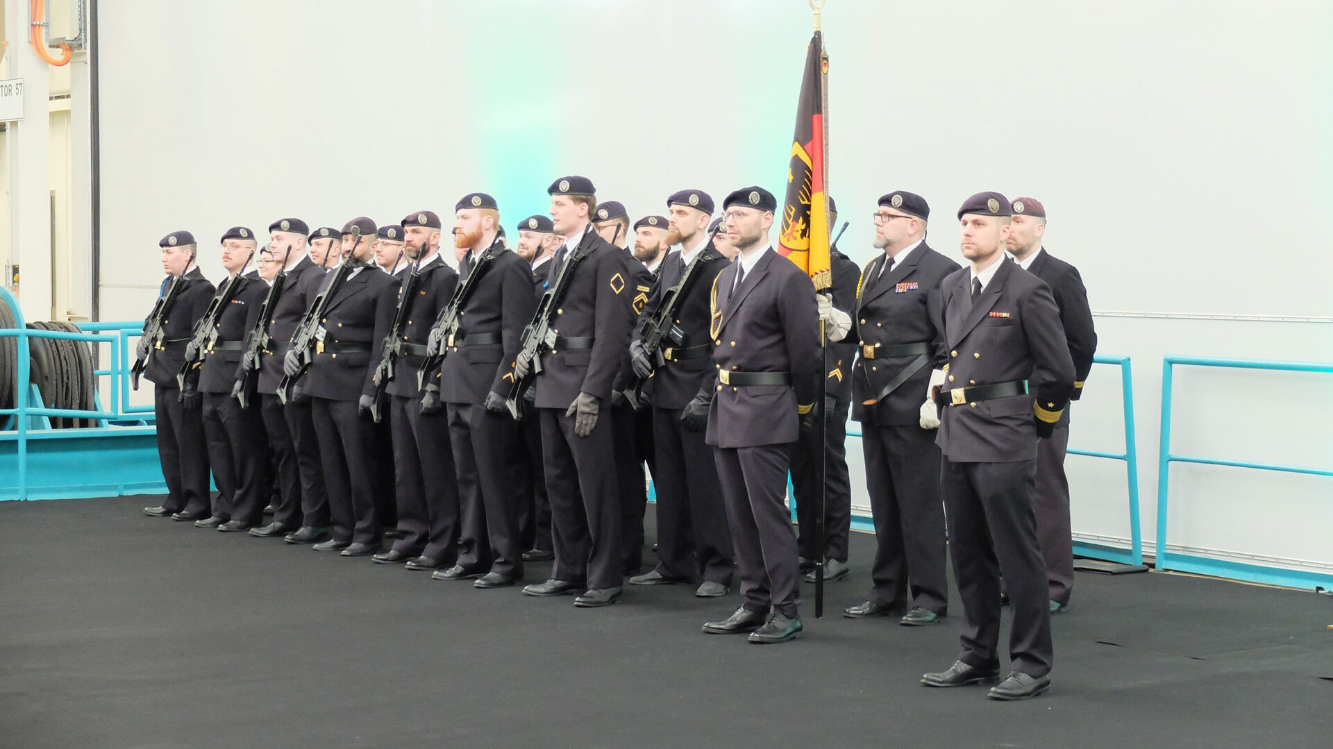 Die Zeremonie erfolgte im Beisein von Mecklenburg-Vorpommerns Ministerpräsidentin Manuela Schwesig, dem stellvertretenden Generalinspekteur, Generalleutnant Andreas Hoppe, sowie dem Inspekteur der Marine, Vizeadmiral Jan Christian Kaack, und dem Inspekteur des Cyber- und Informationsraums, Vizeadmiral Dr. Thomas Daum.