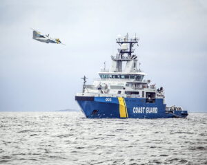 Ein Archivfoto, das die KBV 003 "Amfitrite" und ein Patrouillenflugzeug der schwedischen Küstenwache im Einsatz zeigt. Foto: Kustbevakningen