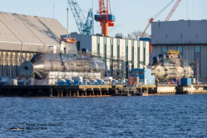 Bei tkms im Vordergrund: RSS Impeccable und U 36; Bei GNYK im Hintergrund die Korvetten für Israel