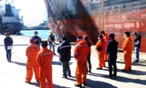 Gerade in schwierigen Zeiten, wie in der Corona-Pandemie, ist der seelische Beistand für Seeleute besonders wichtig. Hier hat eine Seemannsdiakonin, Stefanie Zernikow, die Besatzung eines Schiffes zu einer Andacht eingeladen. Foto: DSM Rostock