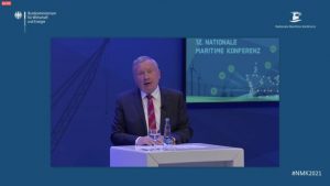 Um 13.00 Uhr begann die Konferenz im Warnemünder Kreuzfahrtterminal mit dem Moderator Yared Dibaba, der als Schleswig-Holsteiner sogleich das „Moin“ als generelle Begrüßungsformel einführte. Norbert Brackmann begrüßte die Gäste und freute sich über 1.200 Anmeldungen. Er begann mit dem Dank an alle maritimen Dienstleister und Unternehmen, die es in der Corona-Pandemie vermochten, die Lieferketten aufrecht zu erhalten. Norbert Brackmann wies in seiner Begrüßung auf die enormen Herausforderungen hin, vor der die maritime Wirtschaft steht. Dabei geht es um Schiffbau, Handel und Umschlag, Klimaschutz und die Digitalisierung. Die Unterstützung des Bundes wird durch ein 1 Milliarde zusätzlich für die maritime Wirtschaft gewährt, zudem durch den Wirtschaftsstabilisierungsfond und das Schulden-Moratorium für die Kreuzfahrer.