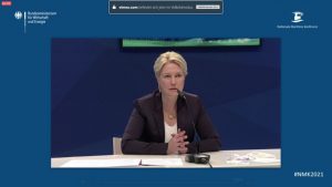 In Ihrem Grußwort machte Manuela Schwesig stolz Werbung für die Leistungsfähigkeit Ihres Bundeslandes, welche nicht nur eine großartige Tourismusbranche, sondern auch eine starke Maritime Wirtschaft als ein wichtiges Standbein habe. Sie freute sich zwar, die Konferenz direkt am Meer im digitalen Raum durchführen zu können, warb aber auch dafür, nach der Pandemie die Veranstaltung „Live und in Farbe“ in Rostock stattfinden lassen