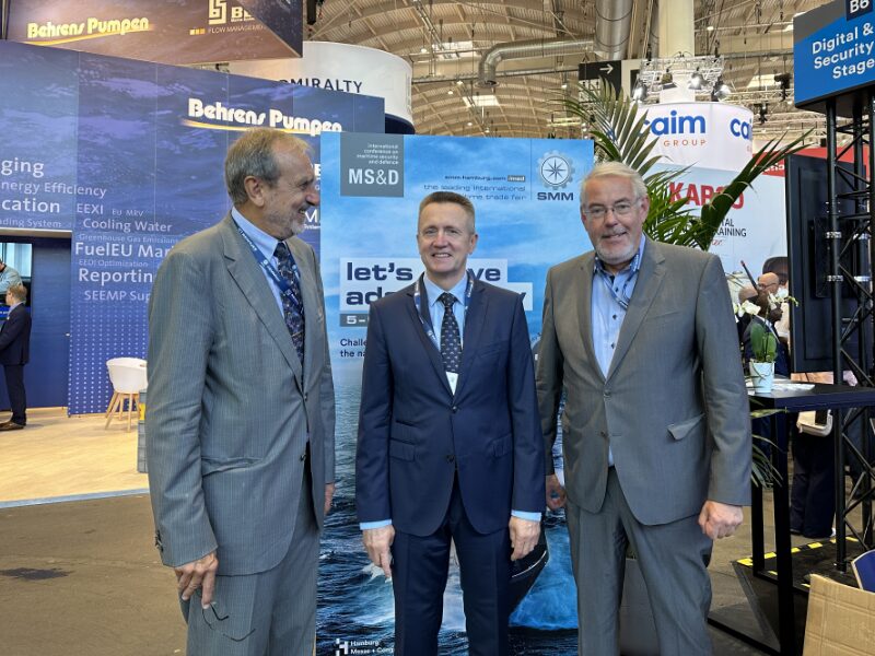 Uwe Mergener, Admiral Igor Kabanenko, Holger Schlüter auf der SMM 2024, Foto:IK