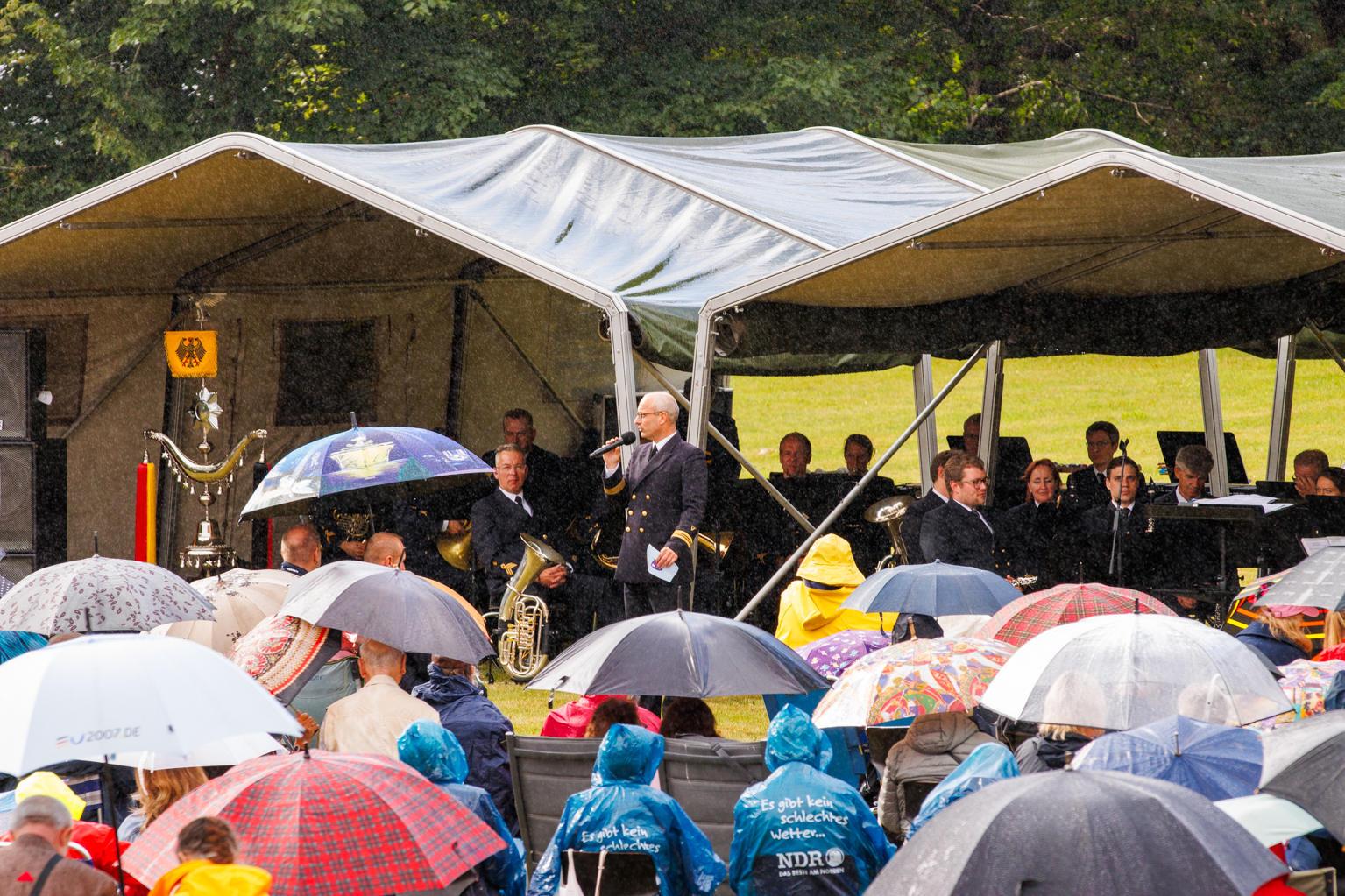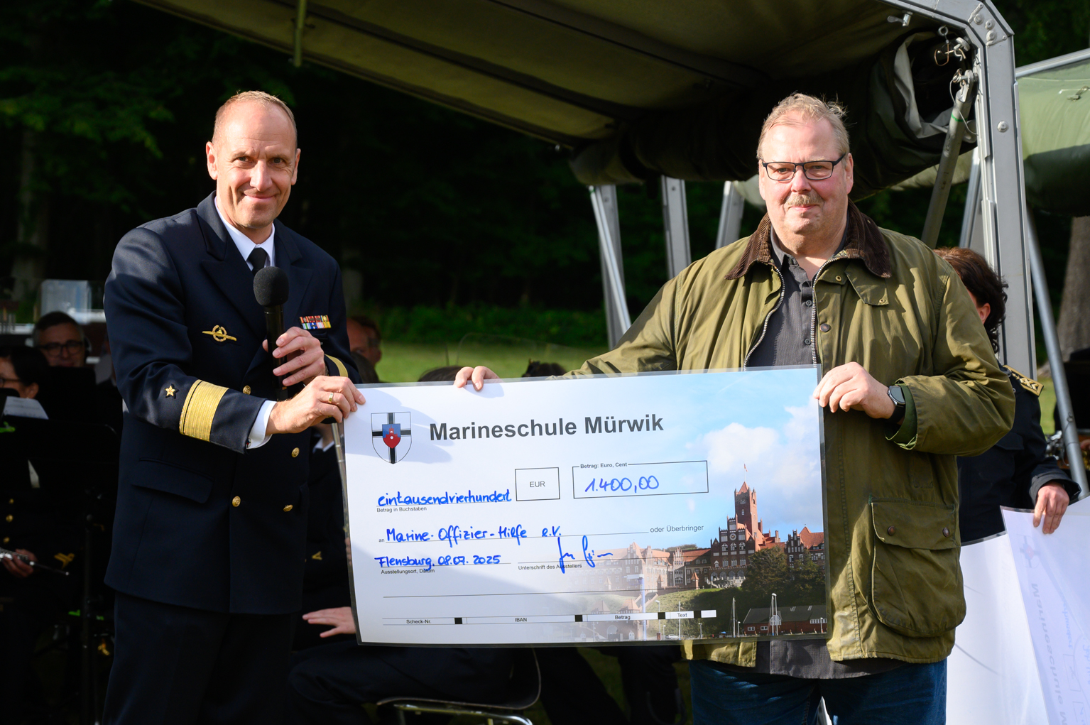 Alle 2 Jahre wieder – die Marineschule Mürwik veranstaltete ein Benefizkonzert. Trotz des wechselhaften Wetters zu Beginn der Veranstaltung, konnte das Marinemusikcorps Kiel unter der Leitung von Kapitänleutnant Andreas Siry sofort eine großartige Stimmung unter den knapp 500 Gästen auslösen. Von der Ouvertüre zu Verdis Nabucco über George Gershwin, James Last und Phil Collins bis hin zu Seemannsliedern, dem Marsch "Gruß an Kiel" fand das Konzert nach guten 2 Stunden mit dem Abspielen der Nationalhymne seinen Abschluss. Und das bei inzwischen besserem Wetter. In diesem Jahr wird der Erlös zu gleichen Teilen an die Marine-Offizier-Hilfe e.V., das Spendenparlament Flensburg und Umgebung sowie die Flensburger Tafel der Johanniter-Unfallhilfe zu 100 % weitergegeben.