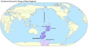 New Zealand, Ausschließliche Wirtschaftszone. Grafik: wikipedia/HvdMaarel/CC BY-SA 4.0