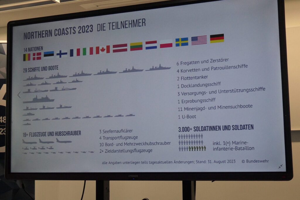 Vom 9. bis zum 23. September 2023 findet das diesjährige maritime Großmanöver Northern Coasts (NOCO), eine der wichtigsten multinationalen Übungen zur Stärkung der Zusammenarbeit der Seestreitkräfte Deutschlands und seiner Partnern im Ostseeraum, statt. In diesem Jahr ist die Deutsche Marine mit DEU MARFOR für die Planung und Durchführung verantwortlich. Der Schutz der Nordflanke ist ein elementarer Schwerpunkt der Deutschen Marine bei der Landes- und Bündnisverteidigung.