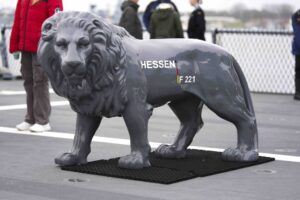 Fregatte "Hessen" - an Oberdeck grüßt das Wappentier. Foto: Bundeswehr/Julia Kelm